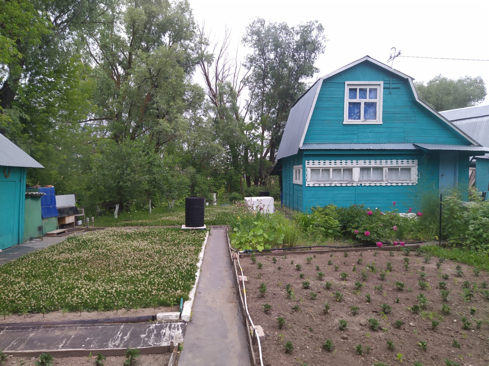 Участок ухоженный, ягода-малина, фрукты-овощи, плодоносящие деревья и кустарники.