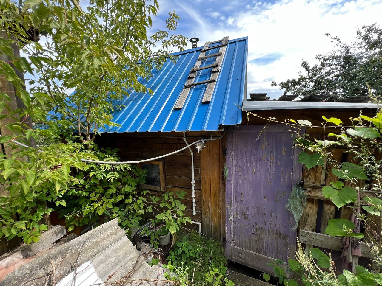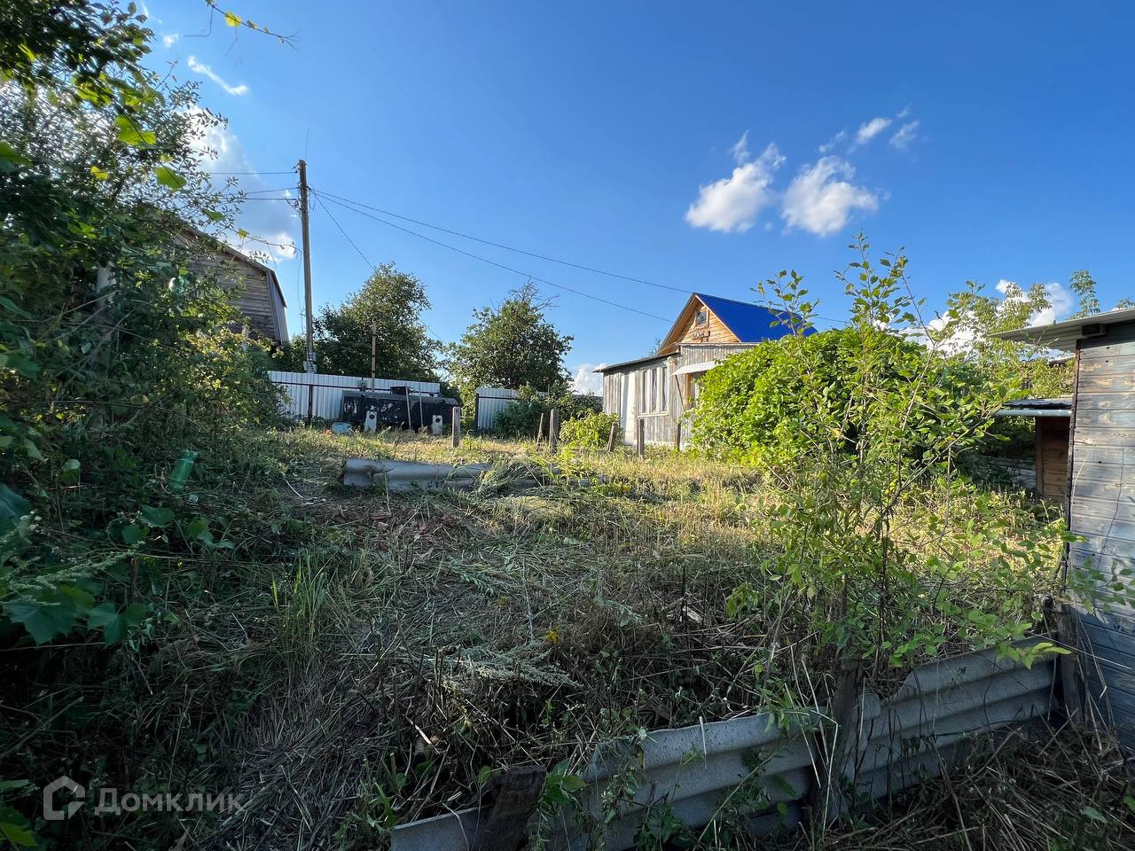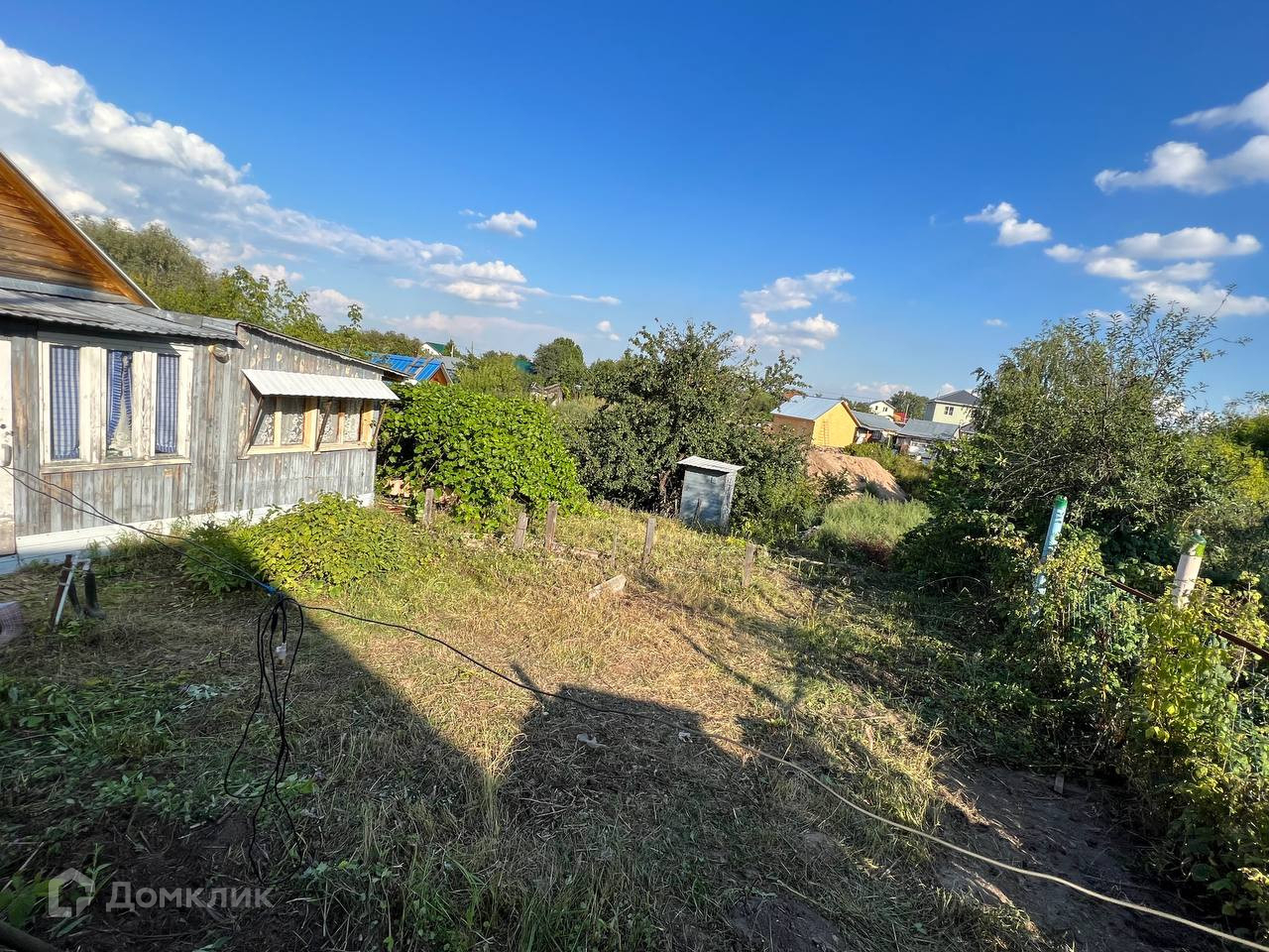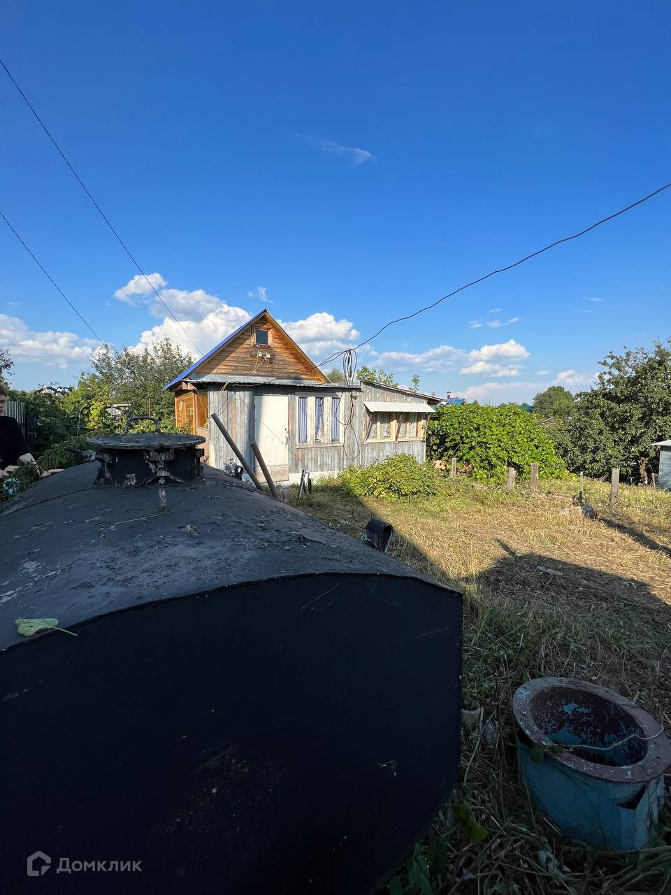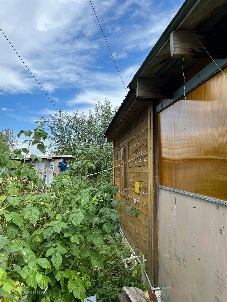 Помимо домика на участке также расположена бревенчатая баня, сарай, туалет, и душ. Участок огорожен забором. Часть участка расположена на склоне. Аллея тупиковая, рядом есть место для парковки автомобилей
