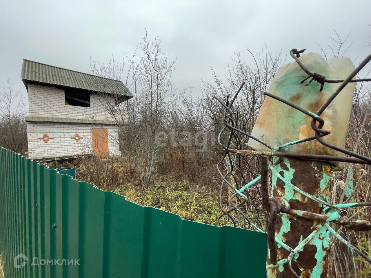 О доме: Дом двухэтажный из белого кирпича. На первом этаже застекленные окна, второй этаж в черновой отделки. Электричество подведено к участку. на участке рядом с домом есть небольшой сарай.