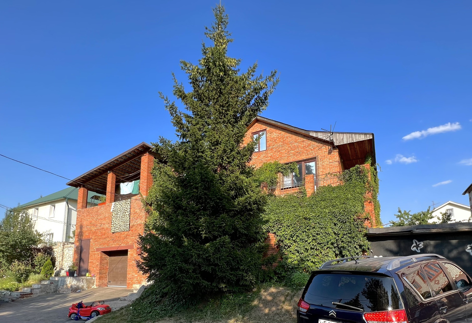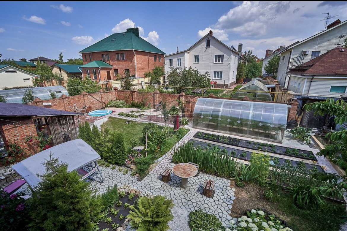 Участок 6 соток с ландшафтом дизайном, дорожки в брусчатки , большие туи , гортензии , пионы, черешня , груша , малина, ежевика, смородина , розы .