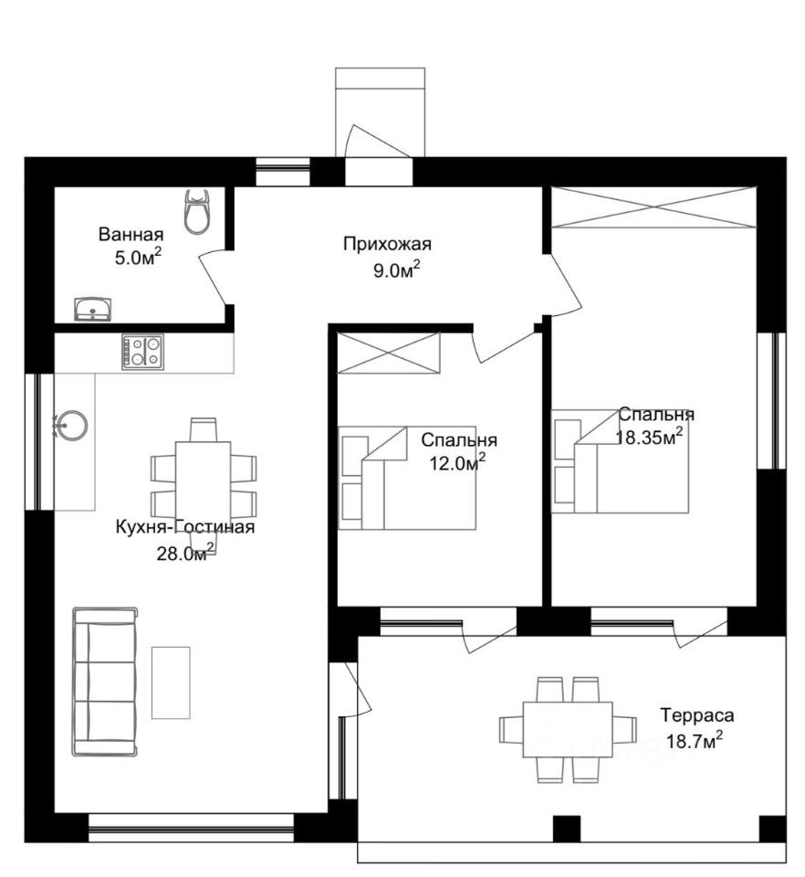 Общая площадь 89 м2