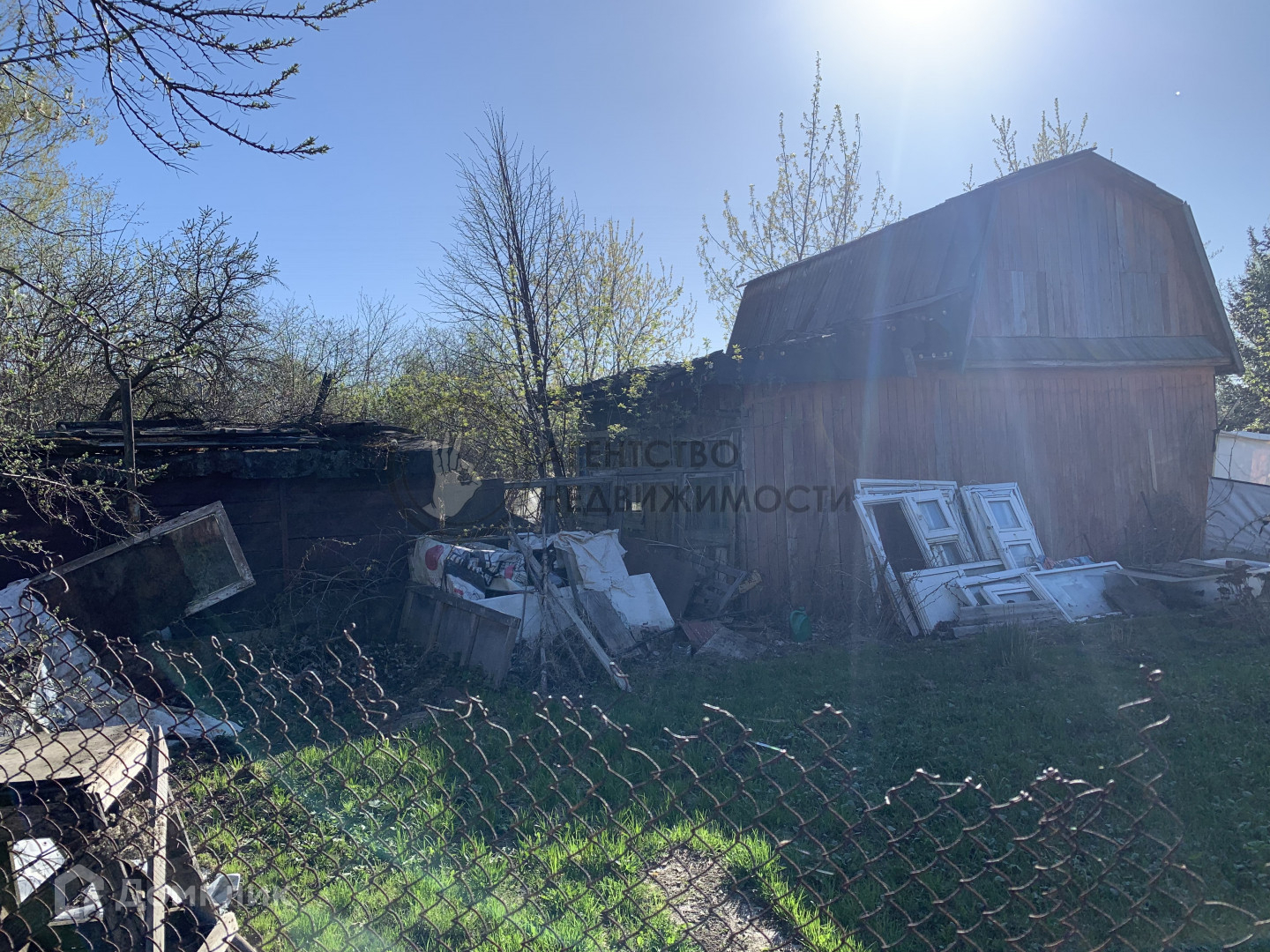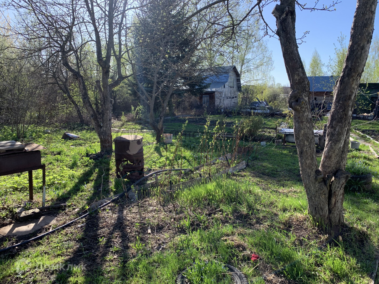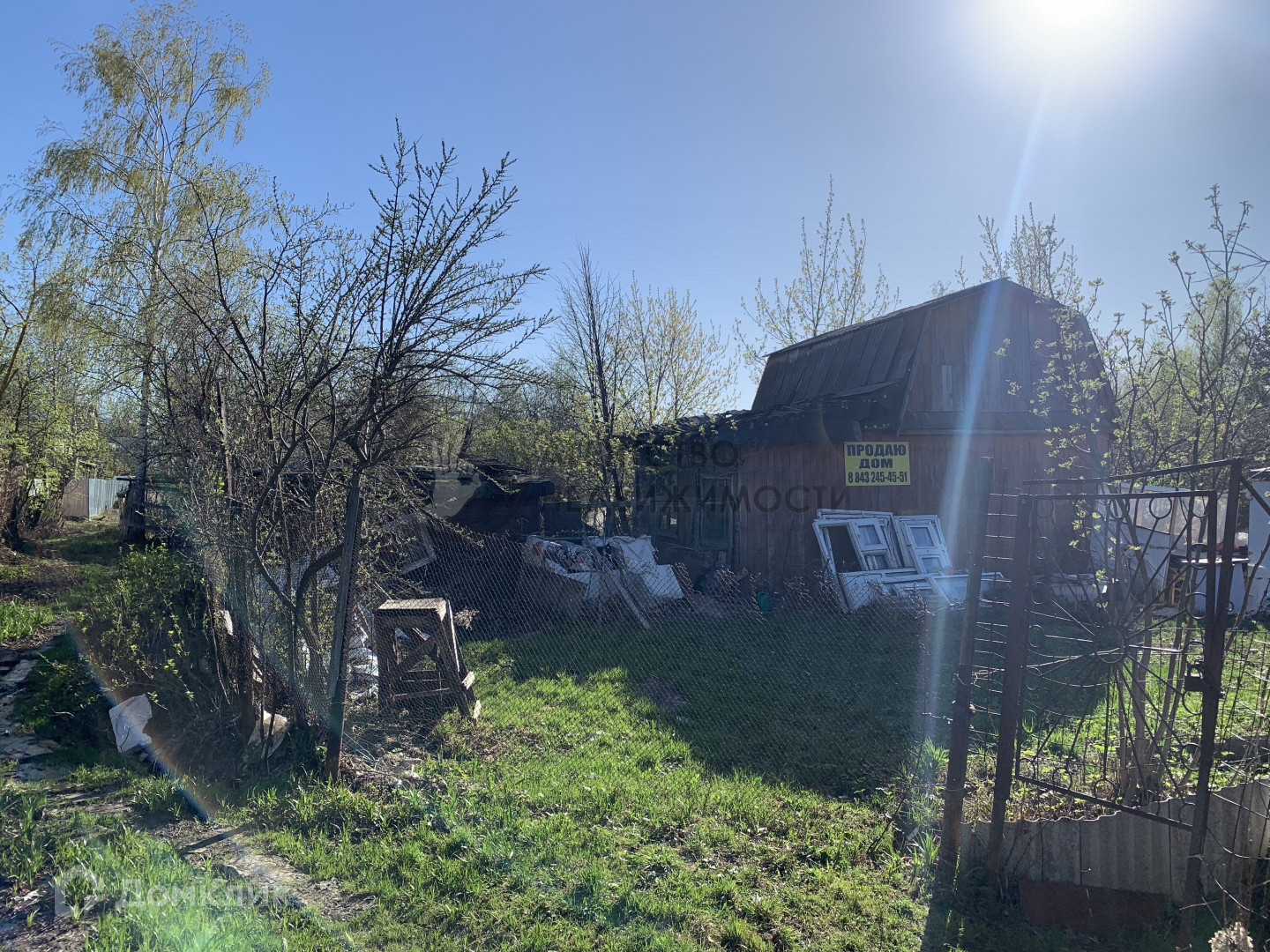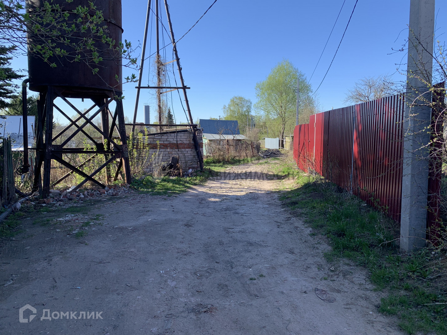 Бани и сарая нет. Забор старый по фото видно. В СНТ централизованная вода из скважины.