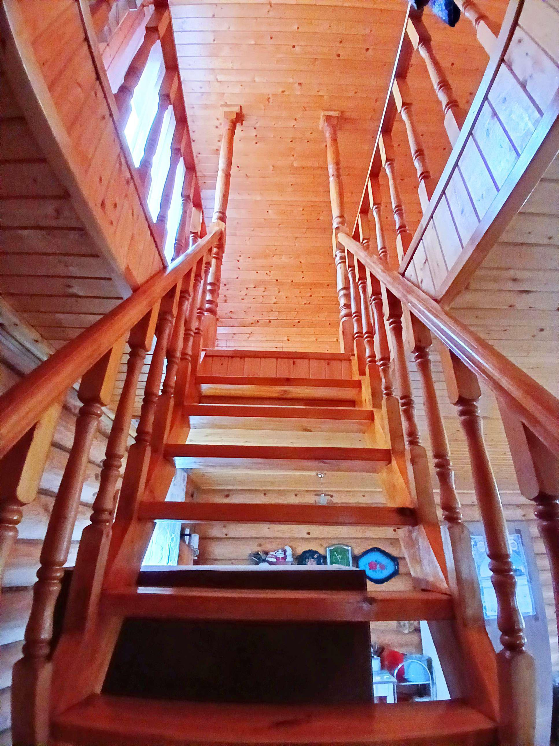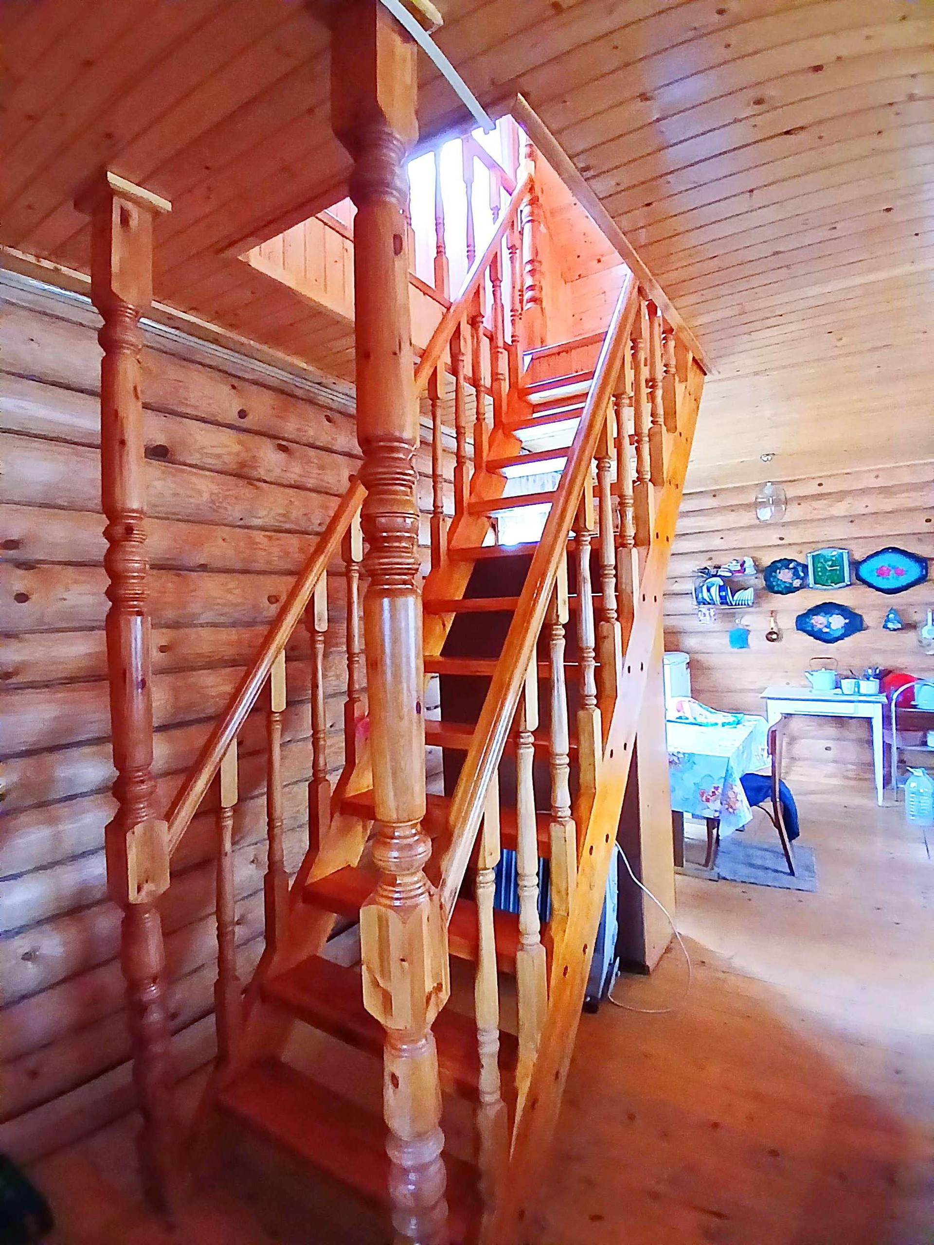 Установлена красивая деревянная лестница на второй этаж.