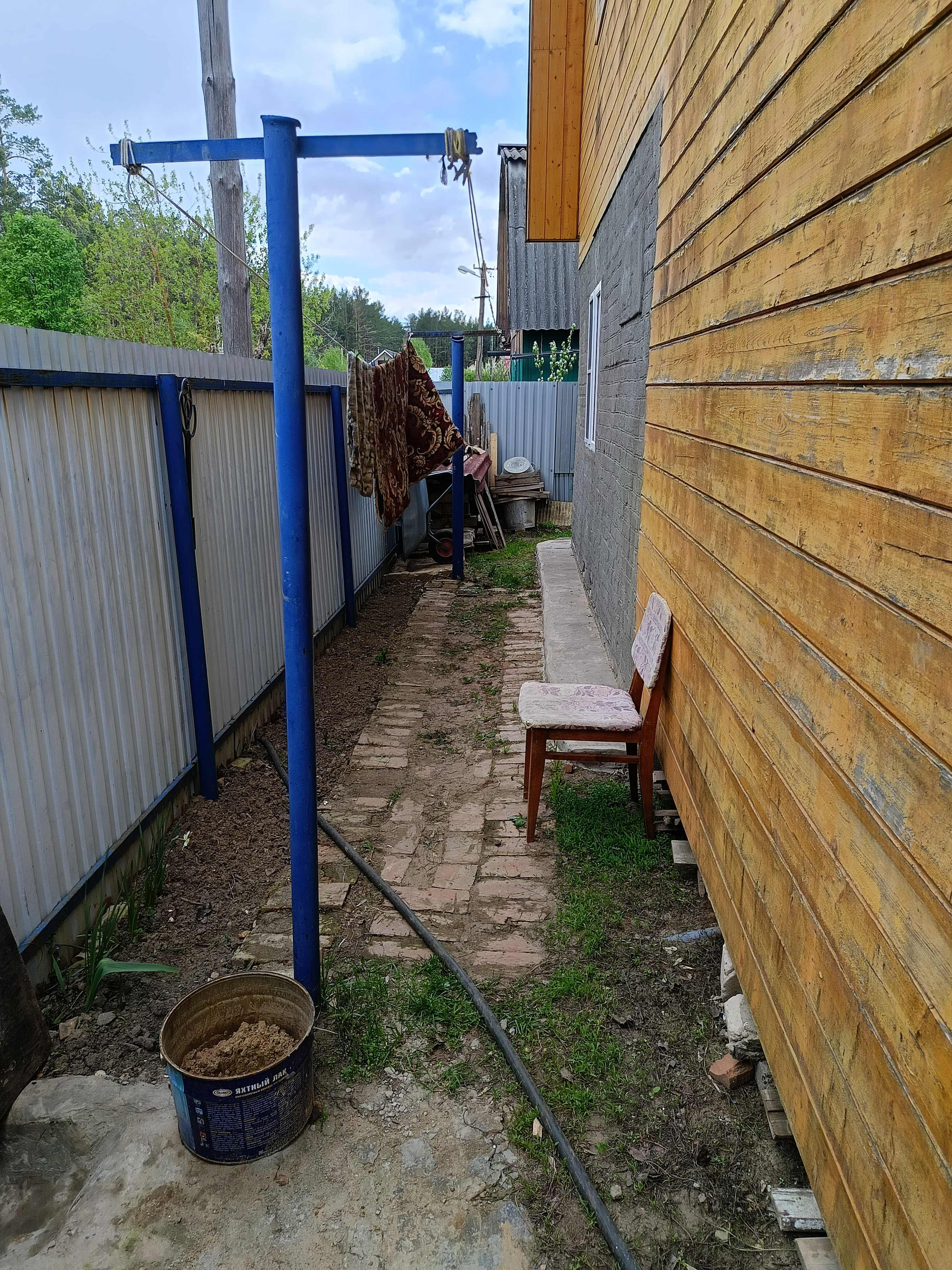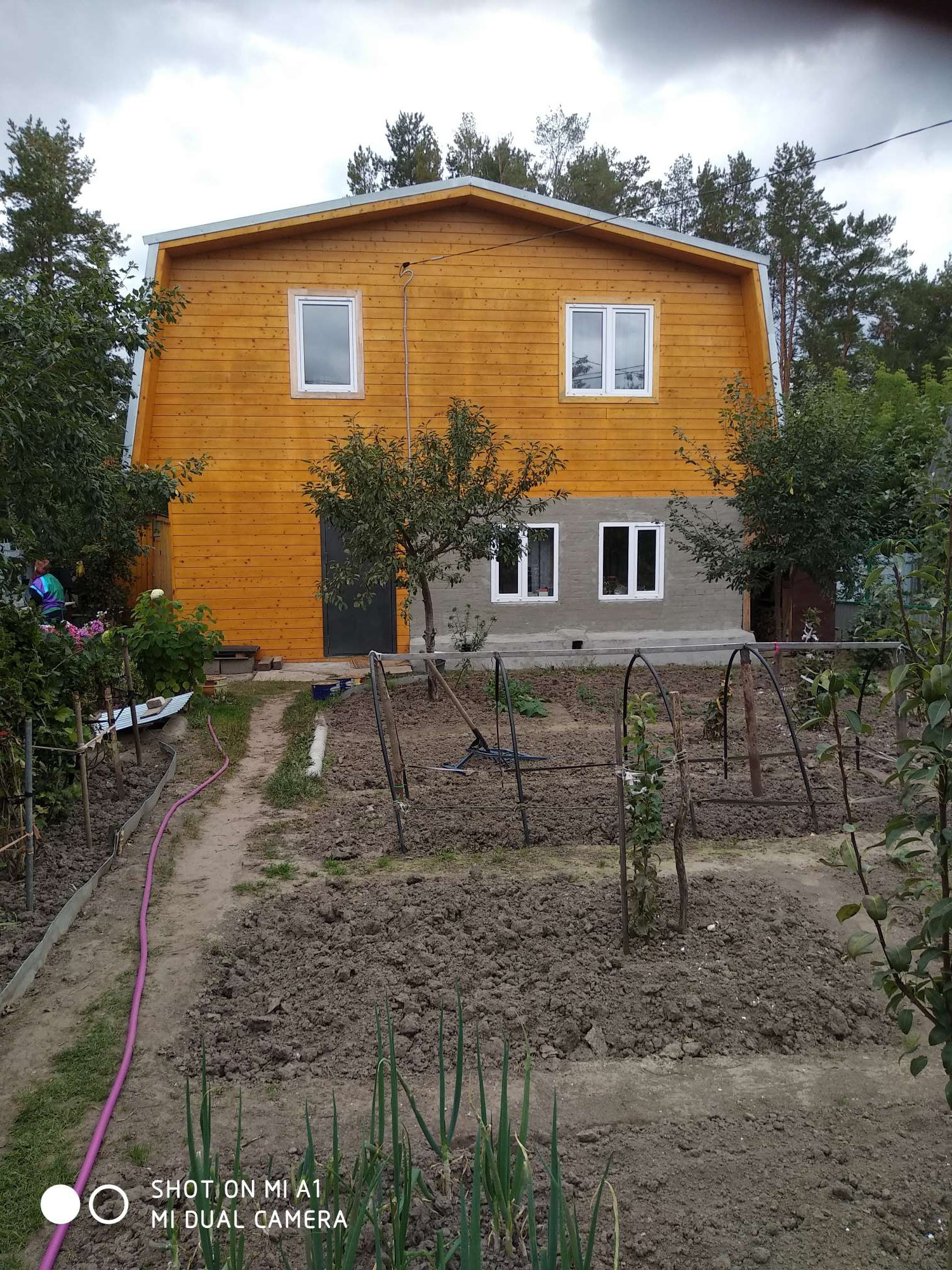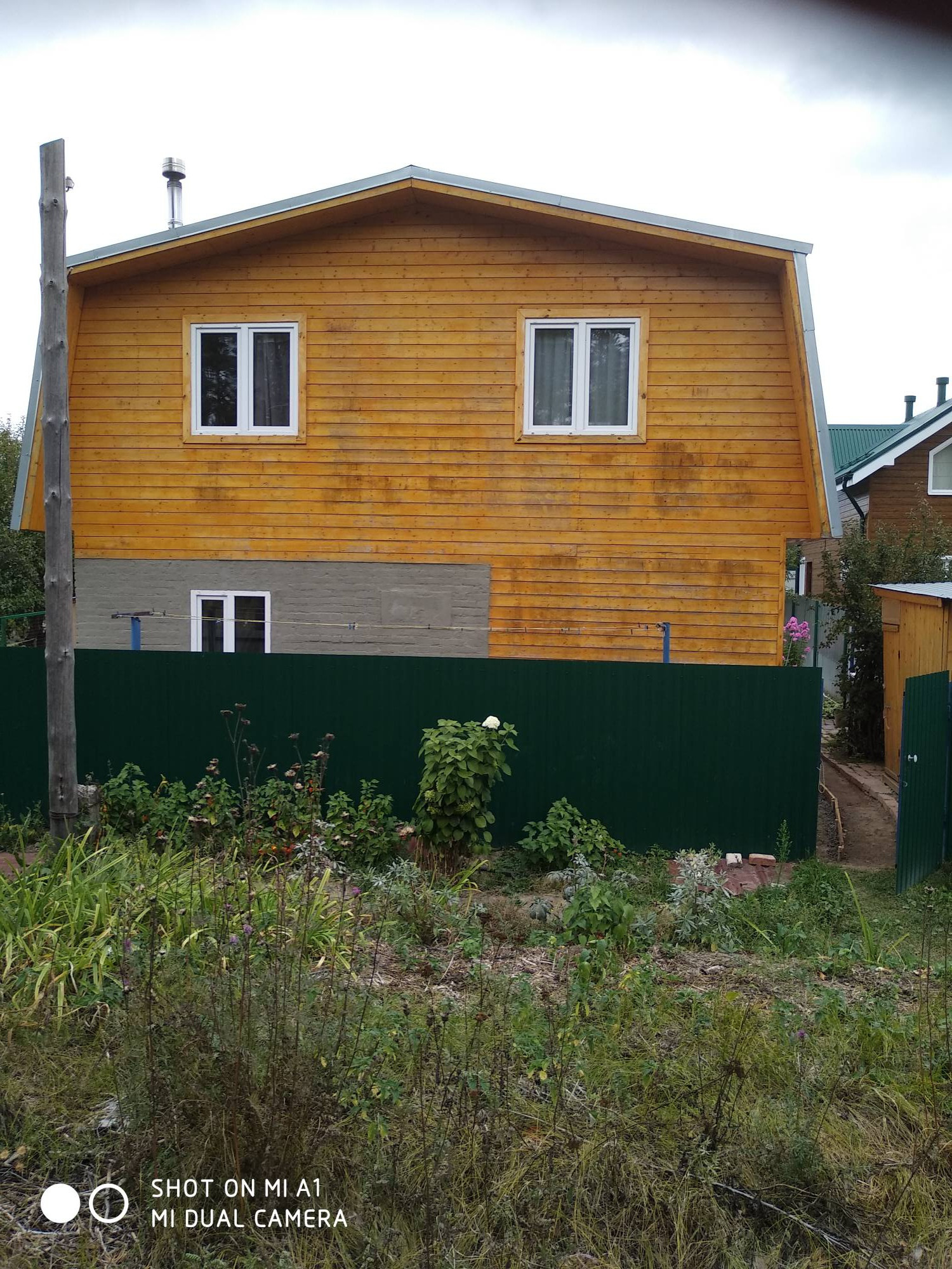 До сада проложена асфальтированная дорога. Участок расположен недалеко от вьезда , где находится магазин и охрана.Есть ворота и две калитки выходящие на обе стороны участка. Туалет на улице. Комната первого этажа из кирпича есть печка. Большая веранда. На втором этаже две комнаты и мансарда. На участке есть погреб, теплица и баня. Есть насаждения: ирга, вишня, слива, слива жёлтая,осенняя большая яблоня , молодая антоновка, смородина(красная, белая, черная),крыжовник (колючковый и молодой безколючковый), жимолость(маленькая), молодая ежевика, два саженца груши, малина, виктория.