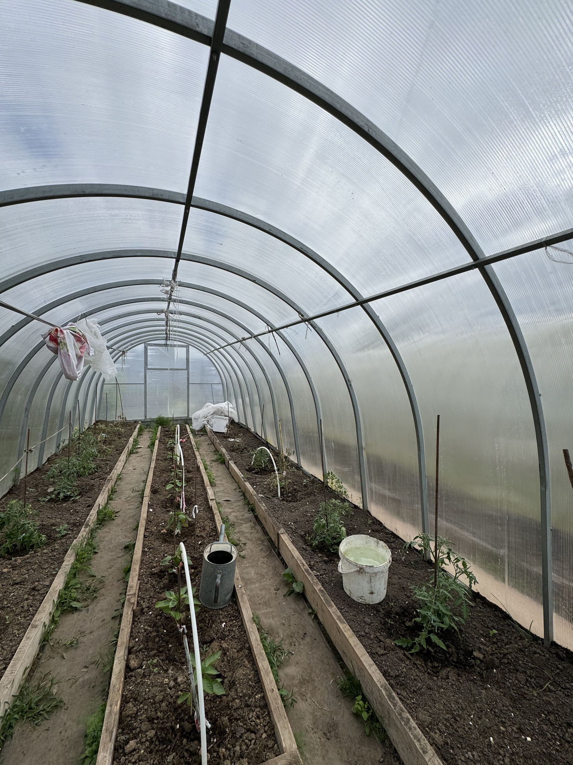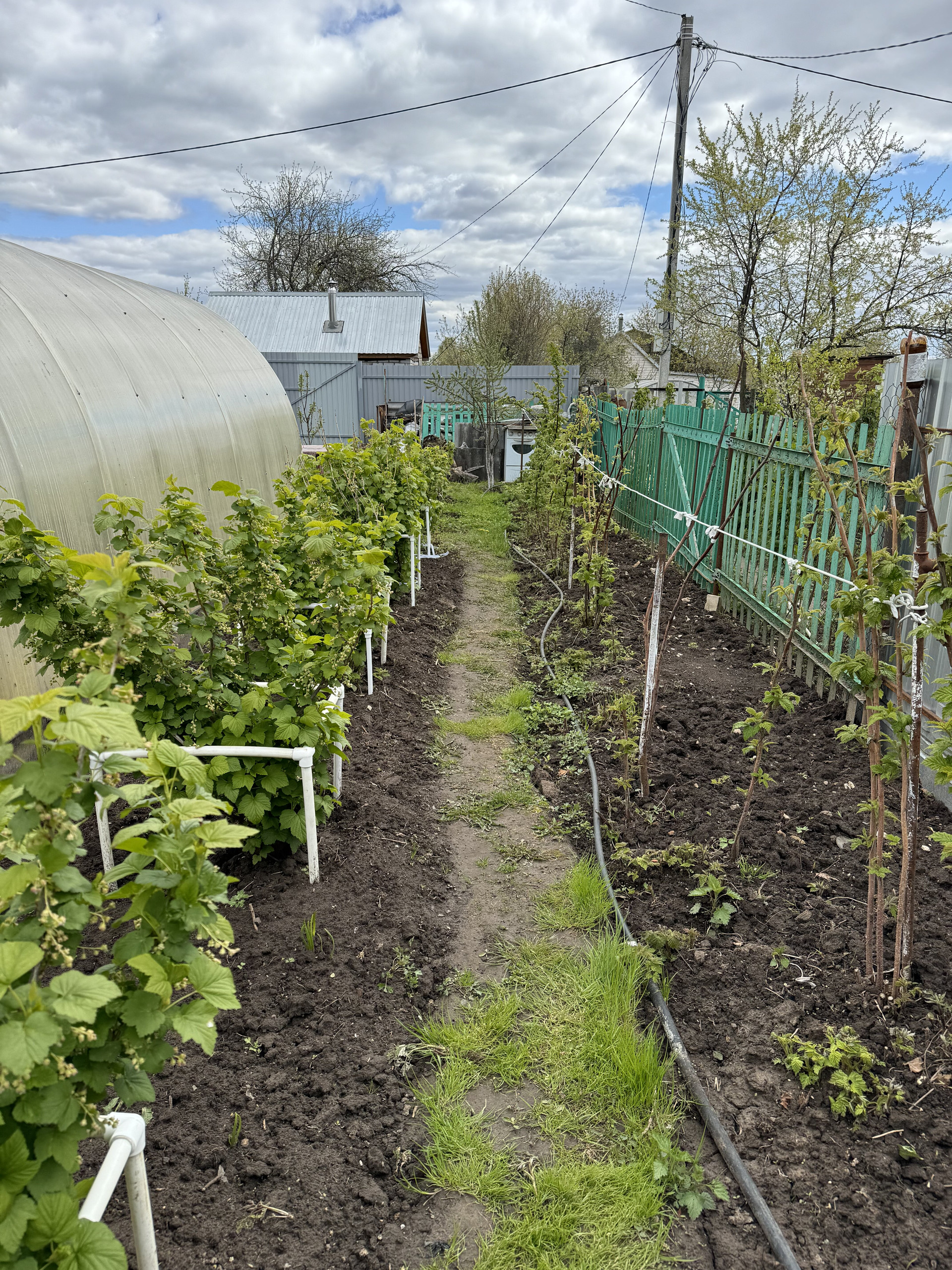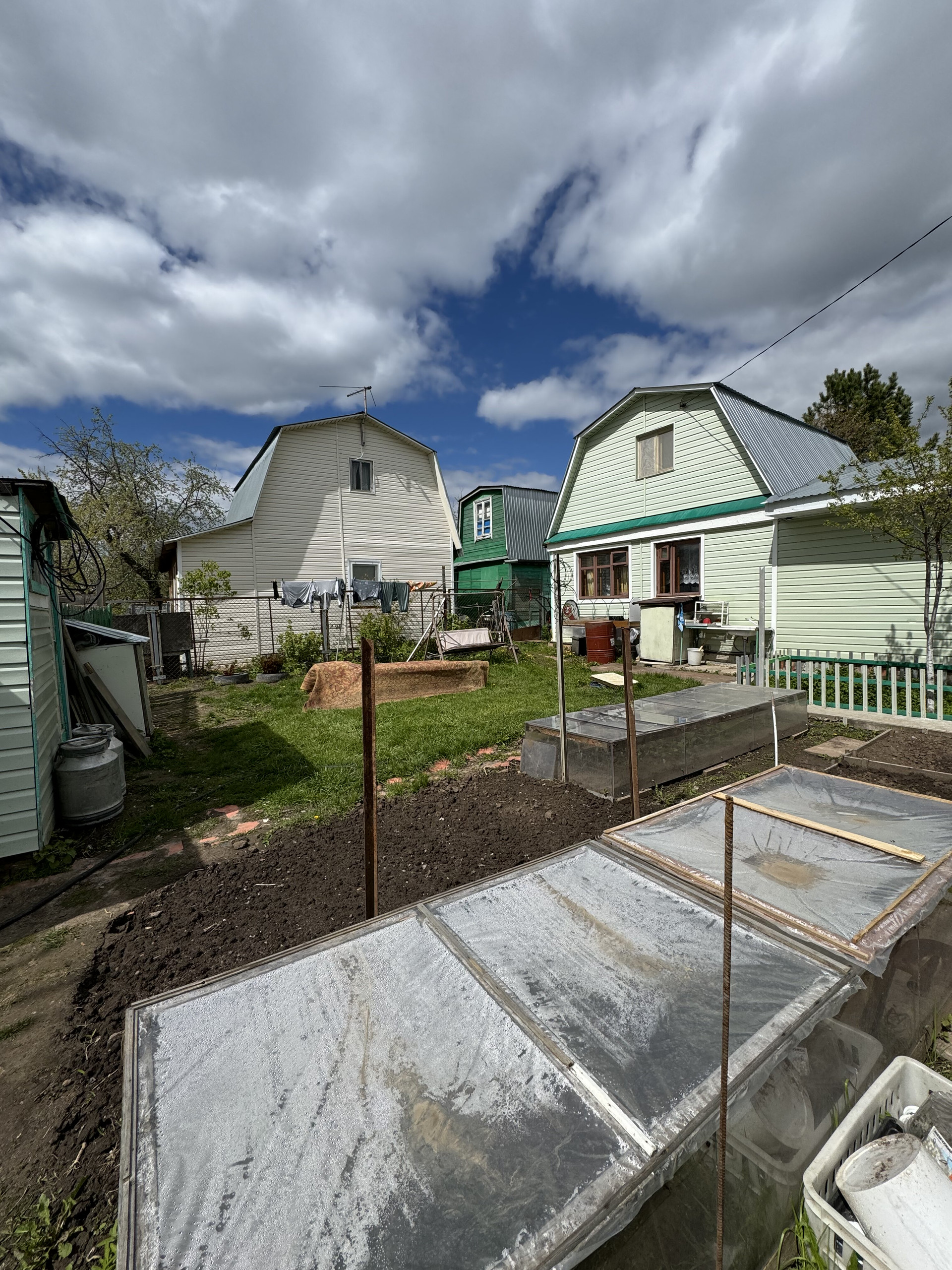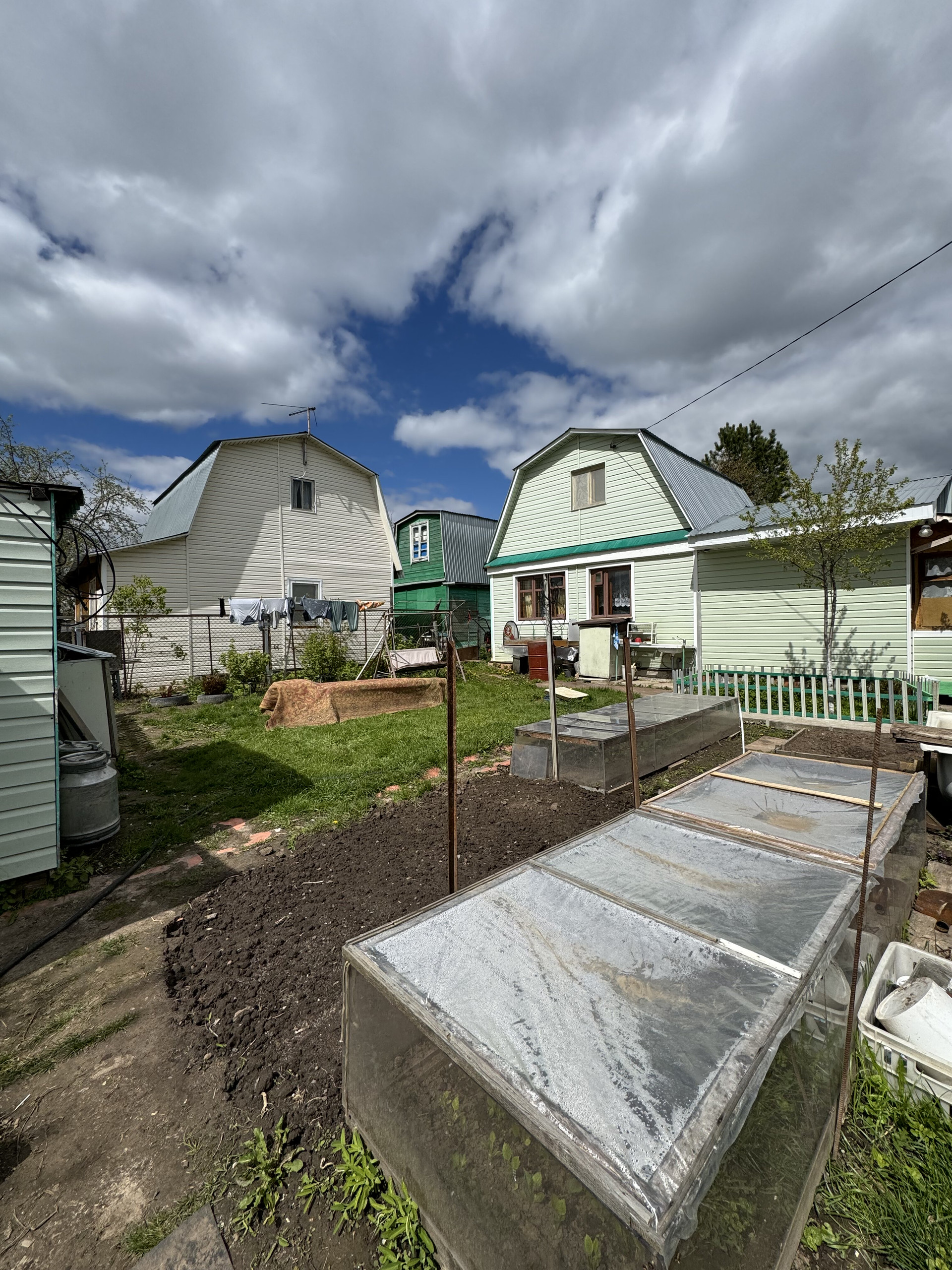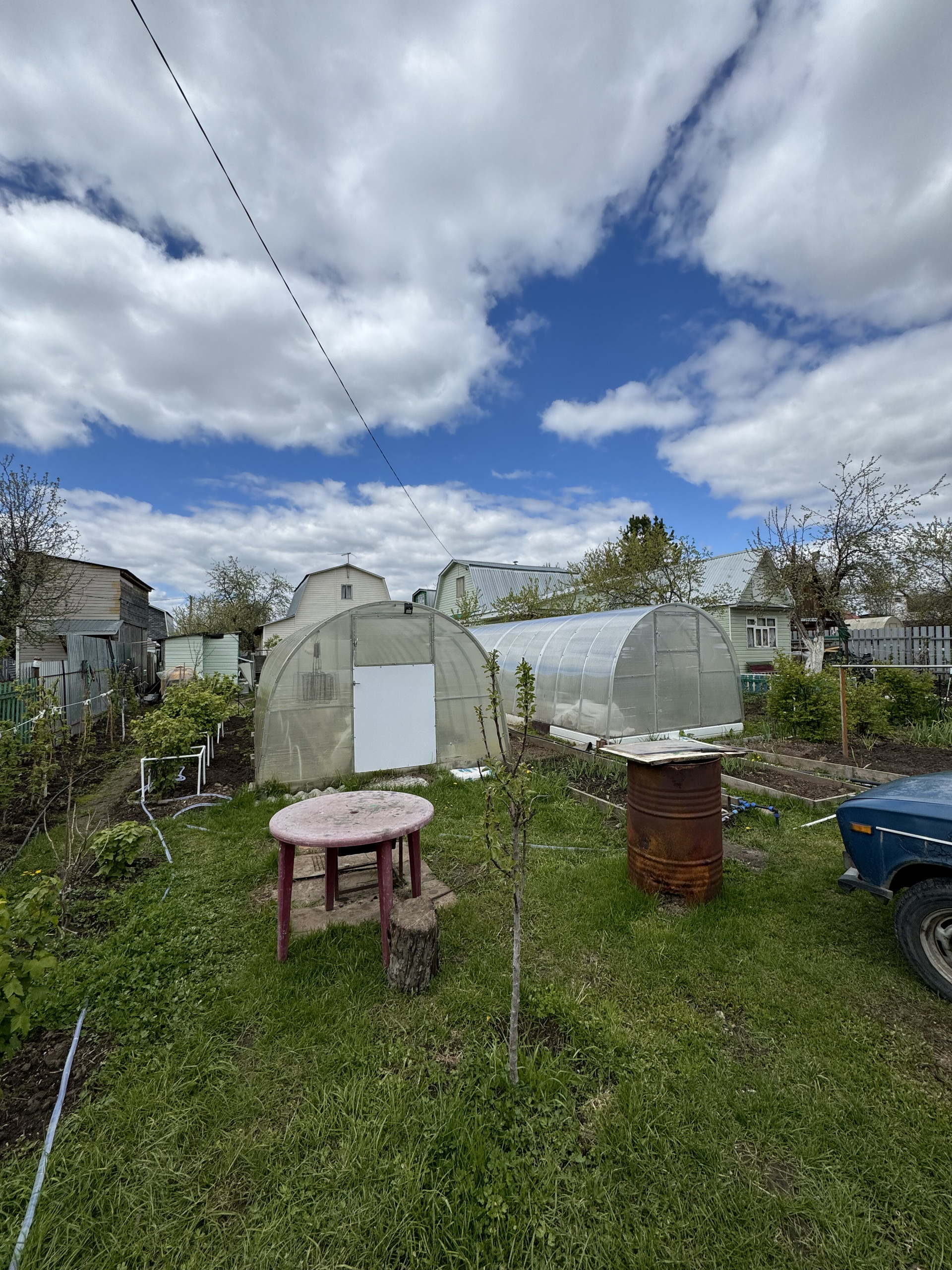 На участке имеется 2 парника , ухоженный сад с насаждениями .