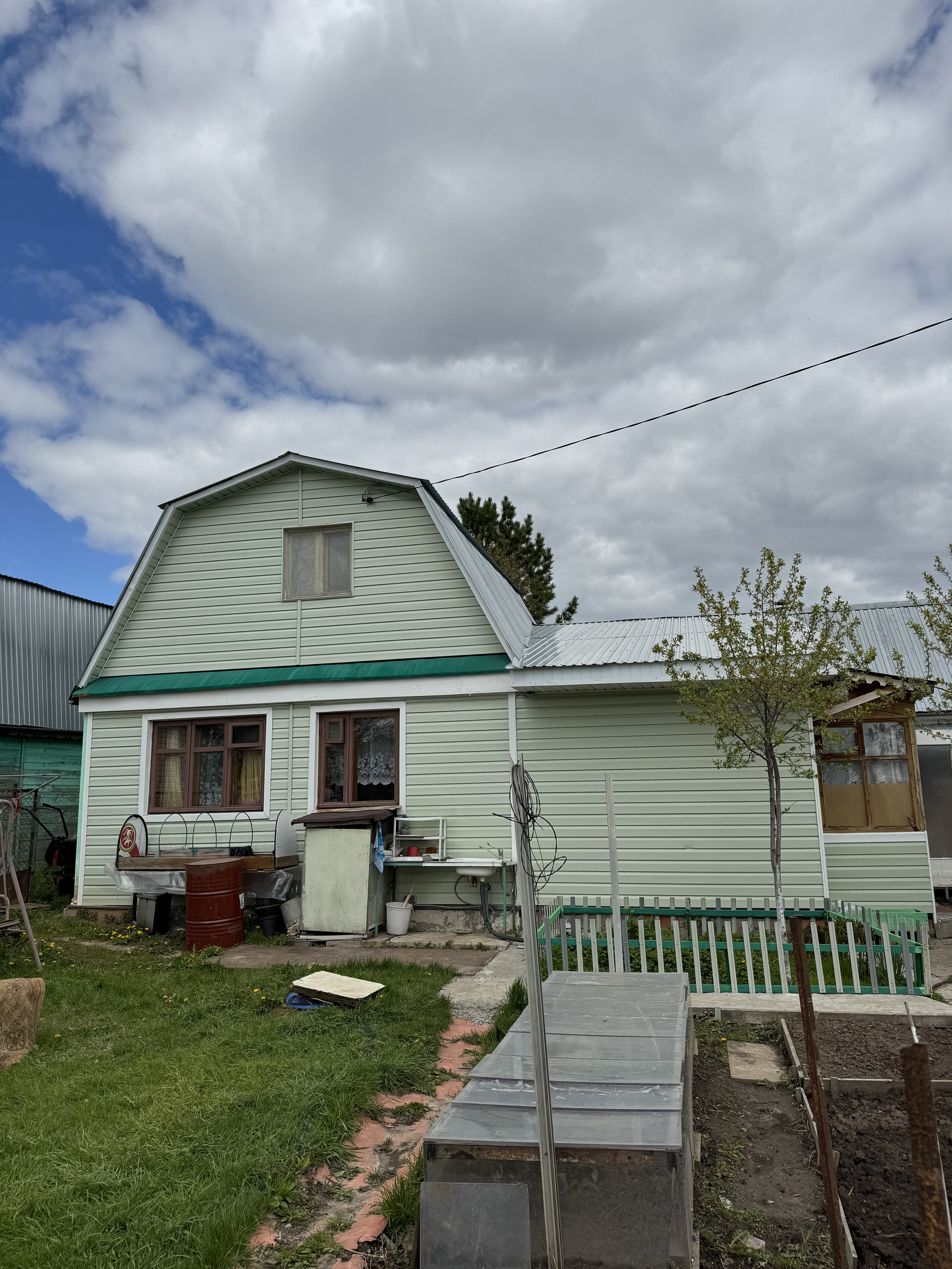 Участок 6 соток , дом 41, 3 кв.м . Дом кирпичный двухэтажный , утеплен и обшит сайдингом, пристроена веранда. В дом заведена вода , электричество, газовая плита с баллоном , есть печка , можно жить зимой . Дом укомплектован всей необходимой мебелью и техникой . Так же к дому пристроена баня, имеется бойлер .