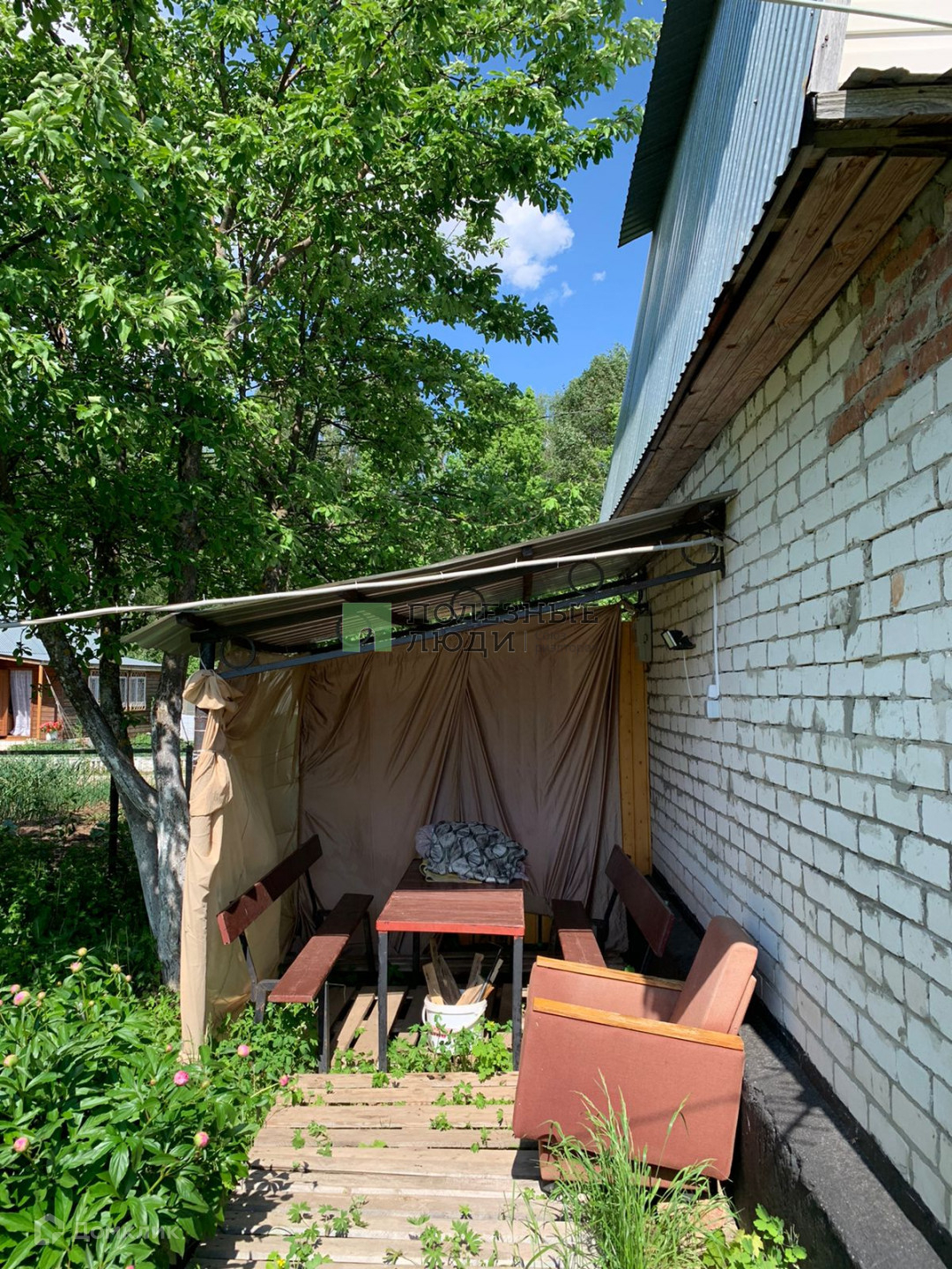 баня ( кирпичная, печка топится дровами, в прошлом году заменили крышу, баня в хорошем состоянии).