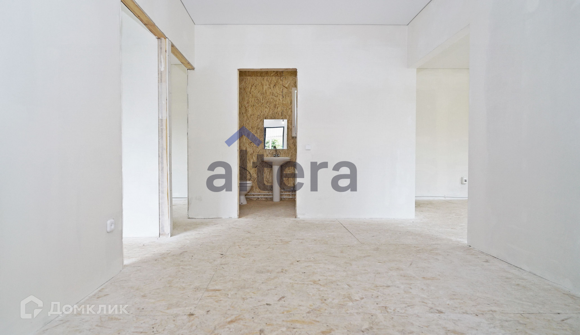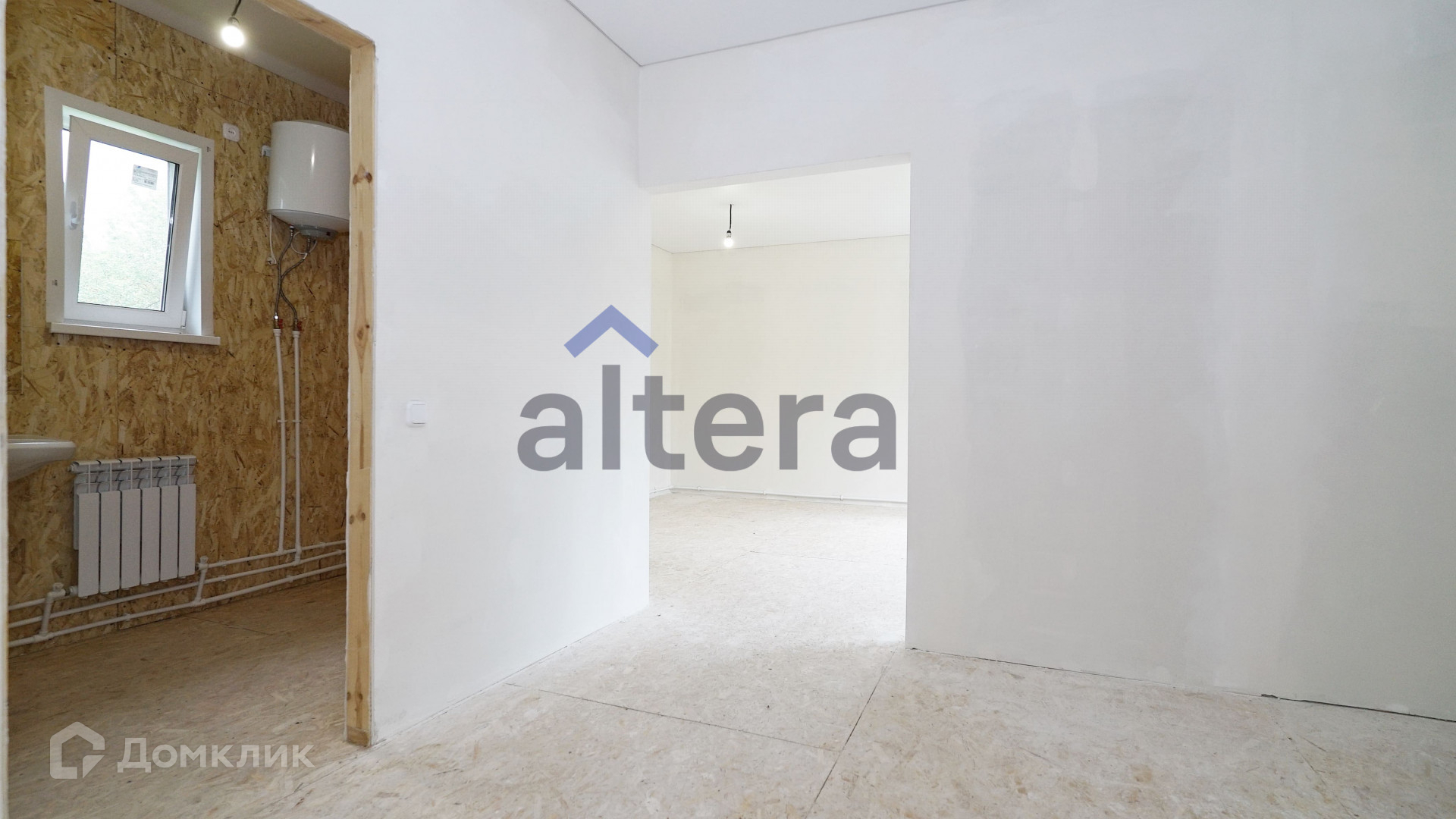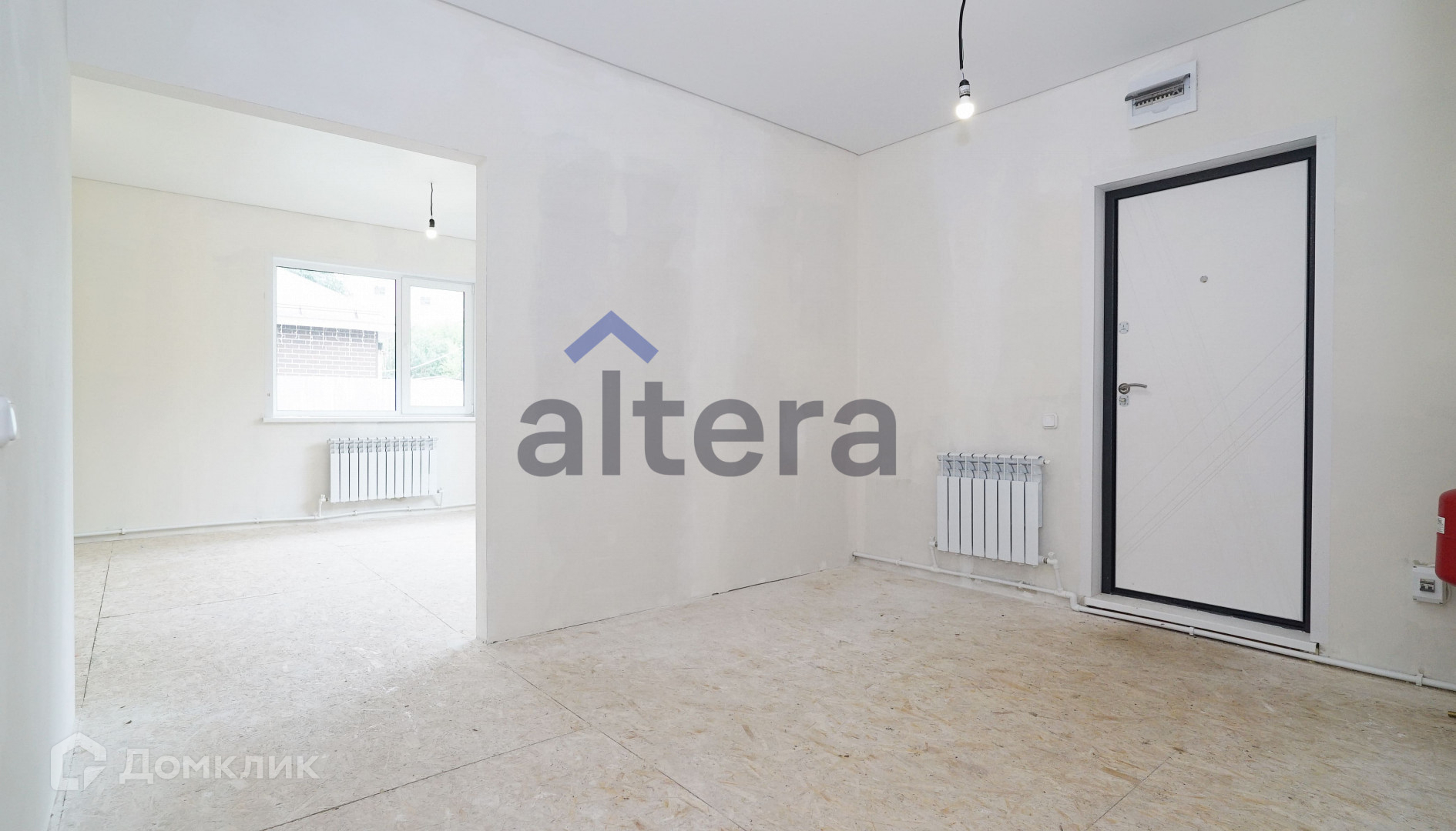 В доме две комнаты правильной формы и большая кухня-гостиная.
