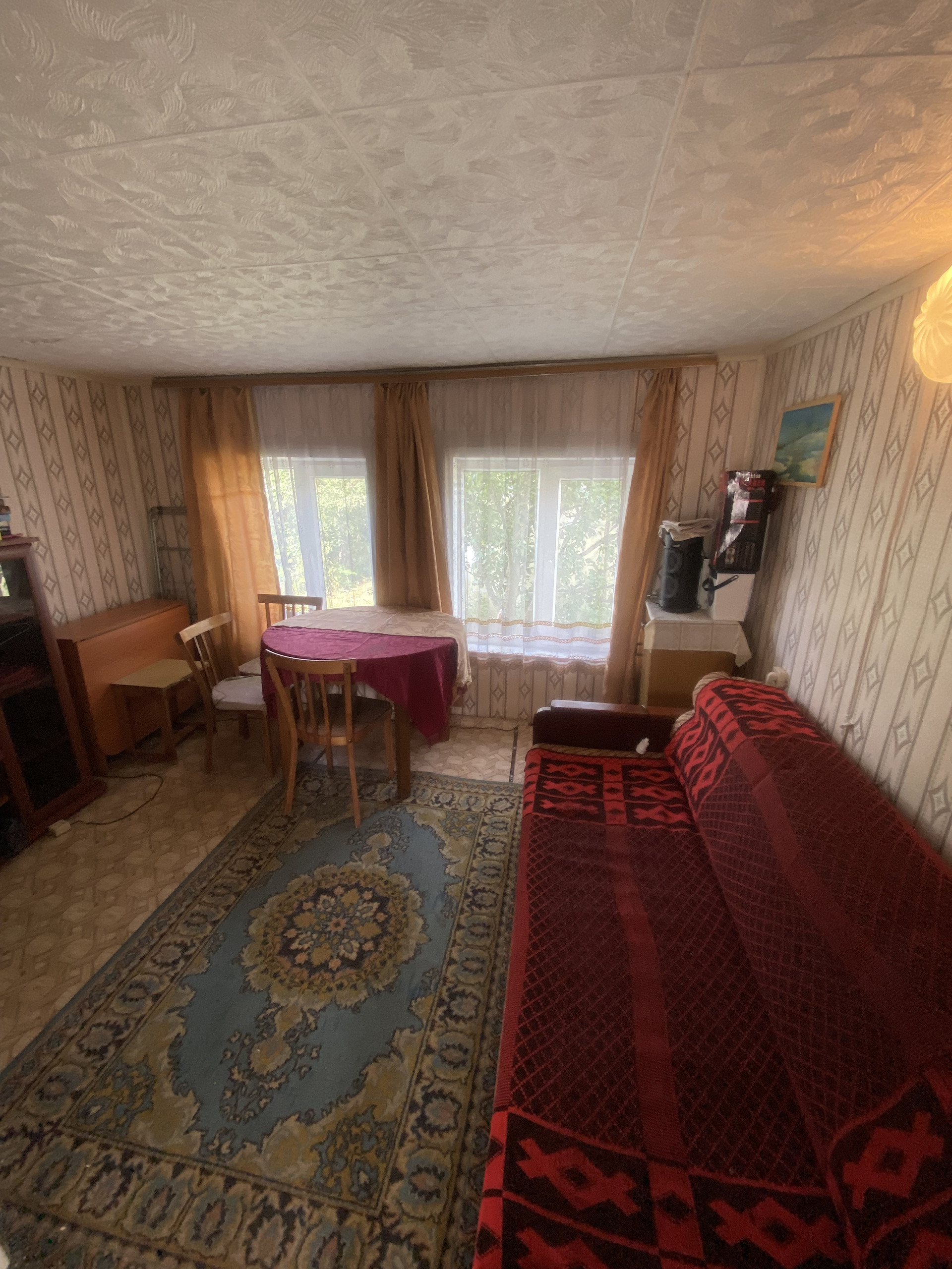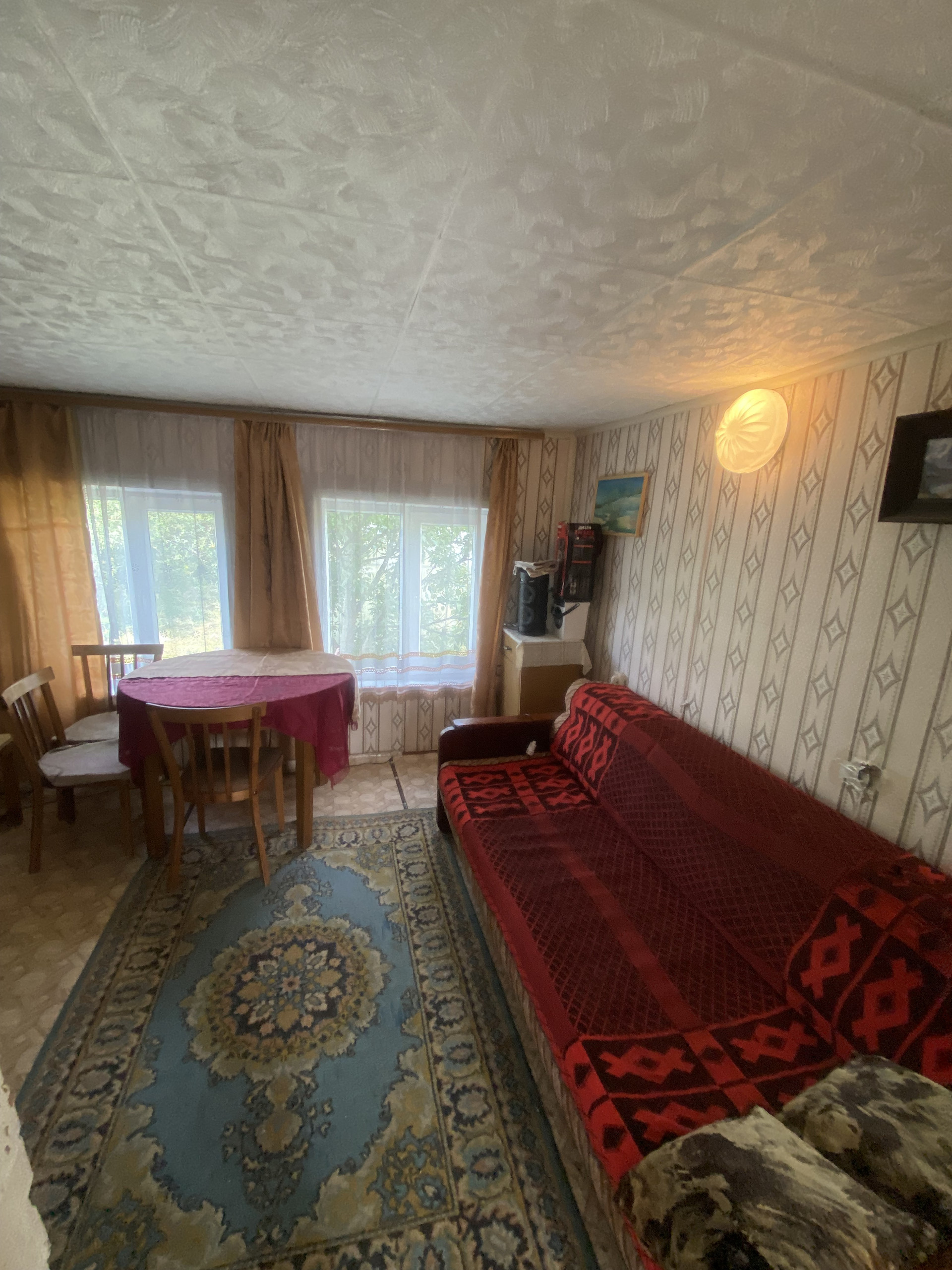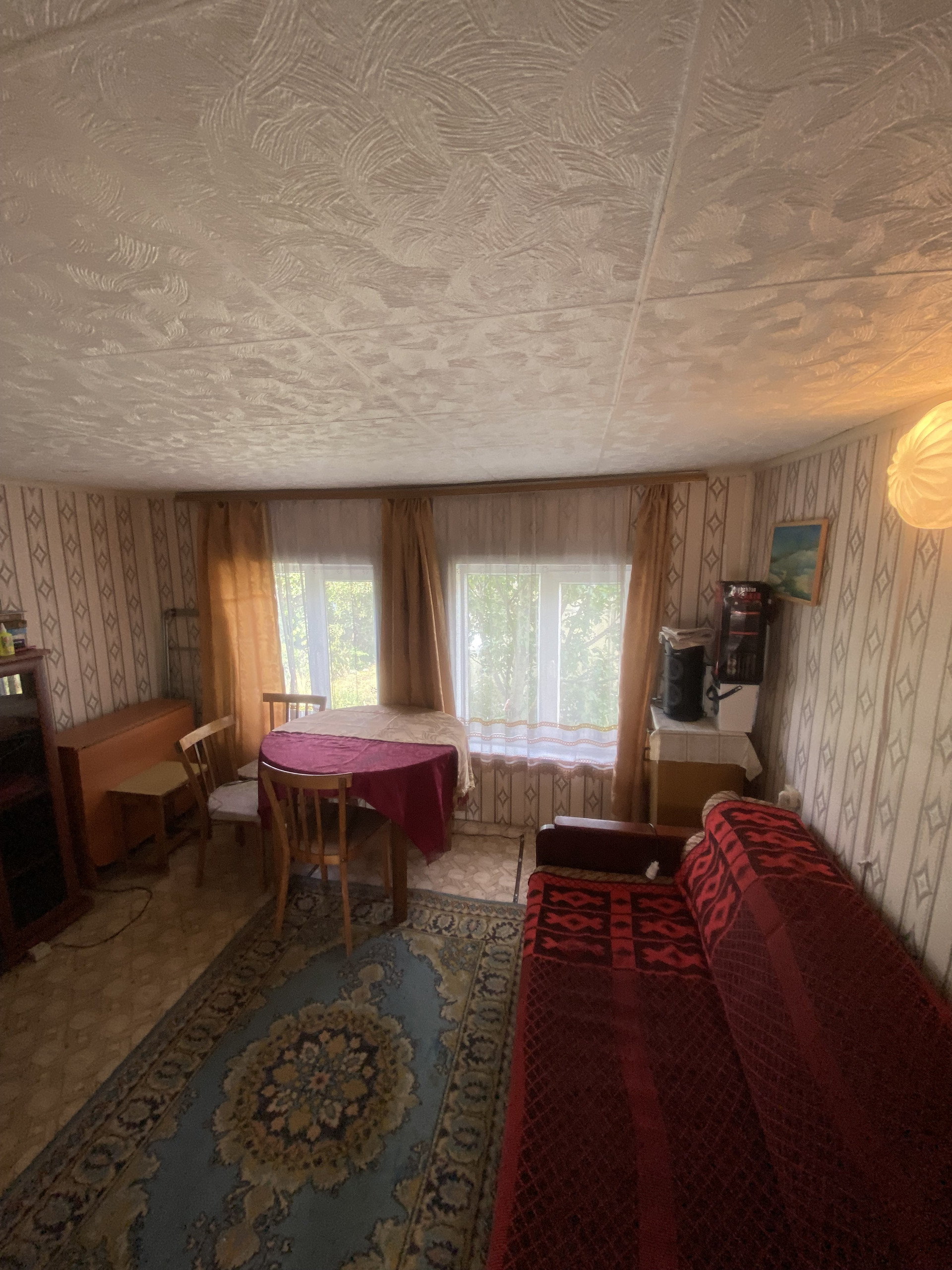 В доме дровяная печь позволяющая обогревать дом круглый год.
