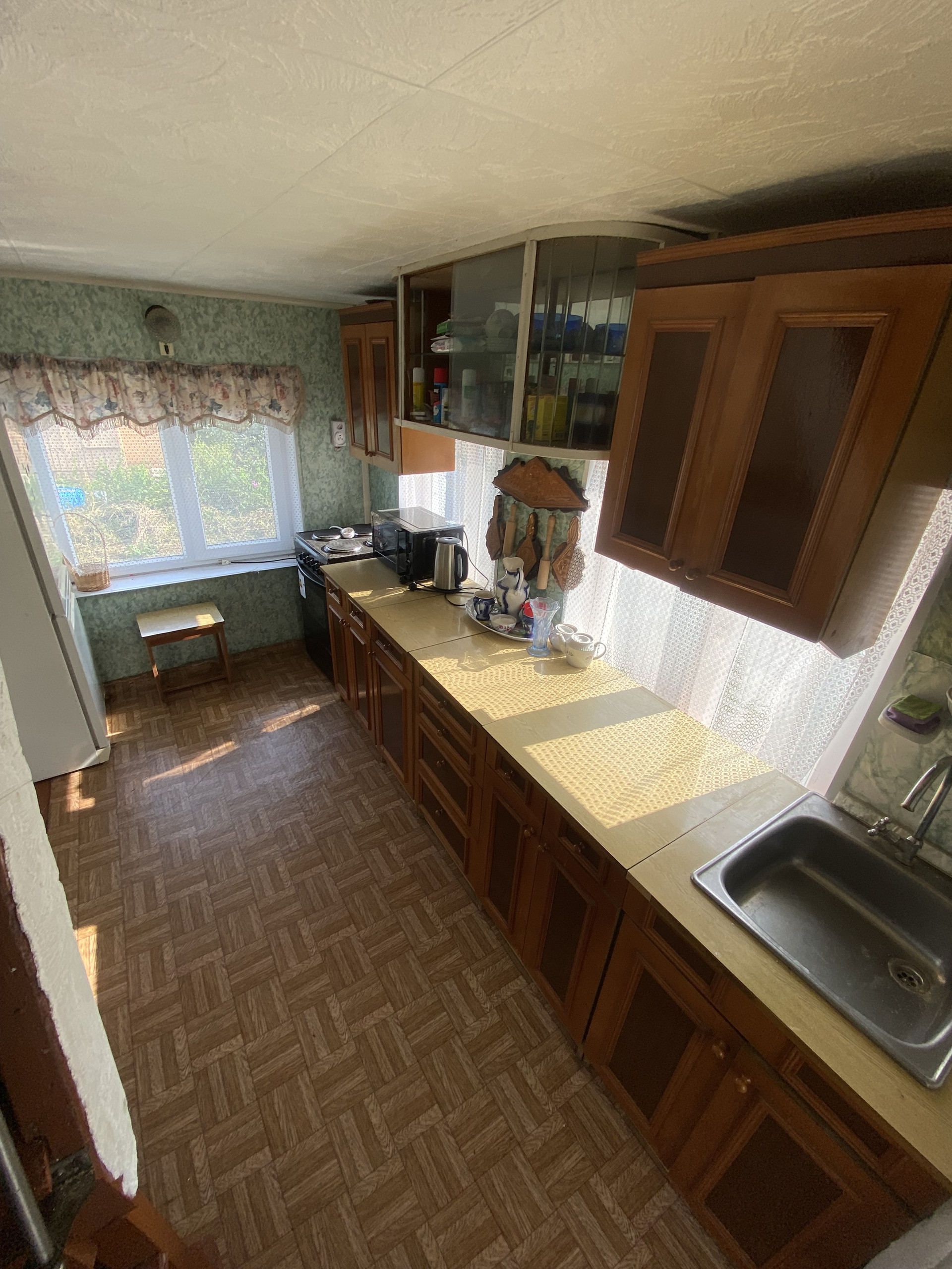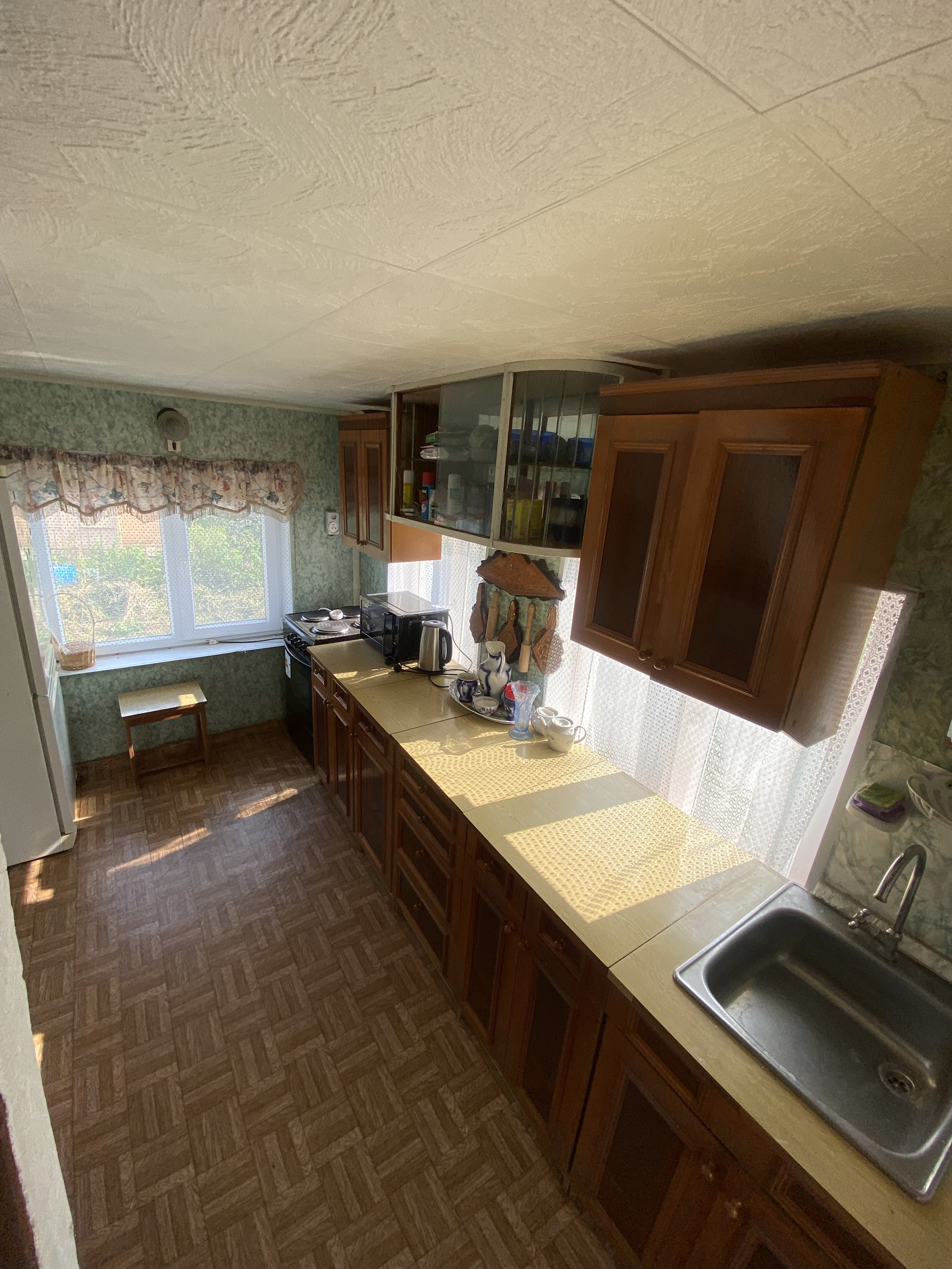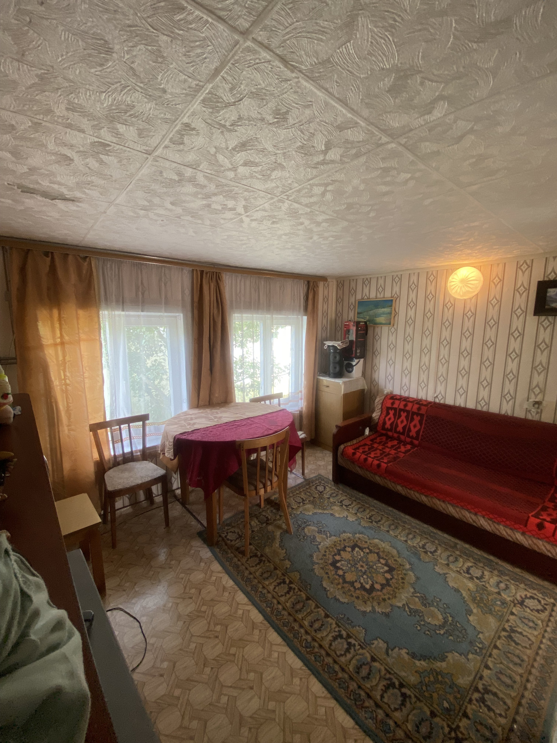 В доме дровяная печь позволяющая обогревать дом круглый год.
