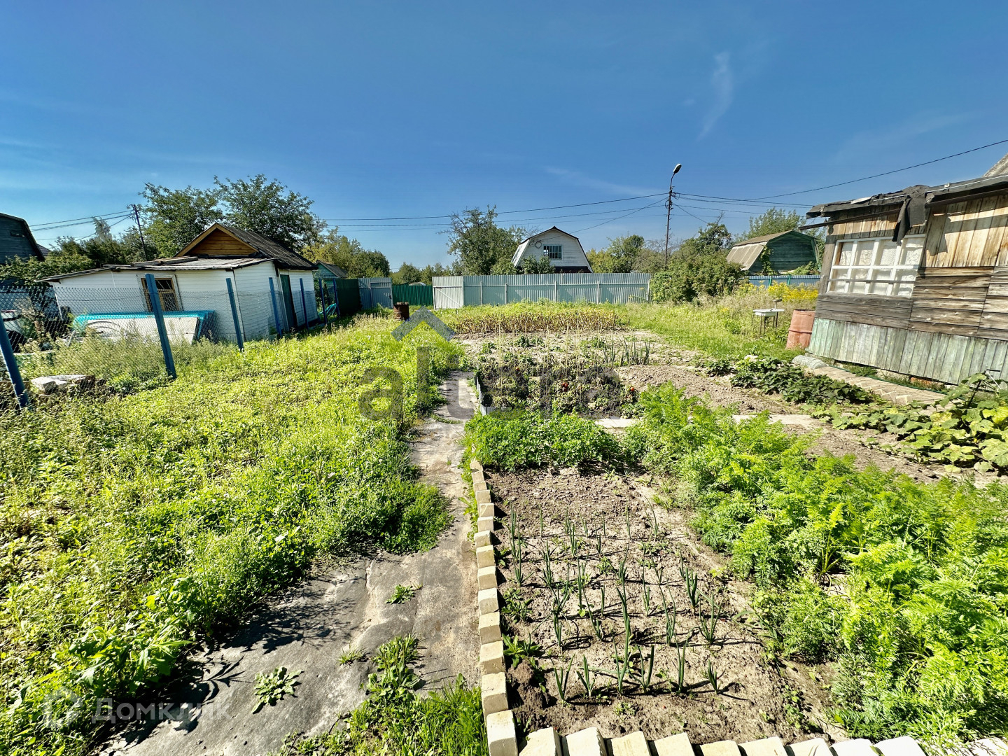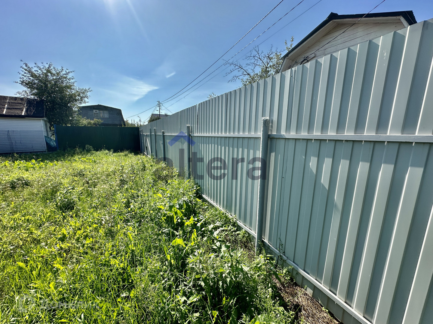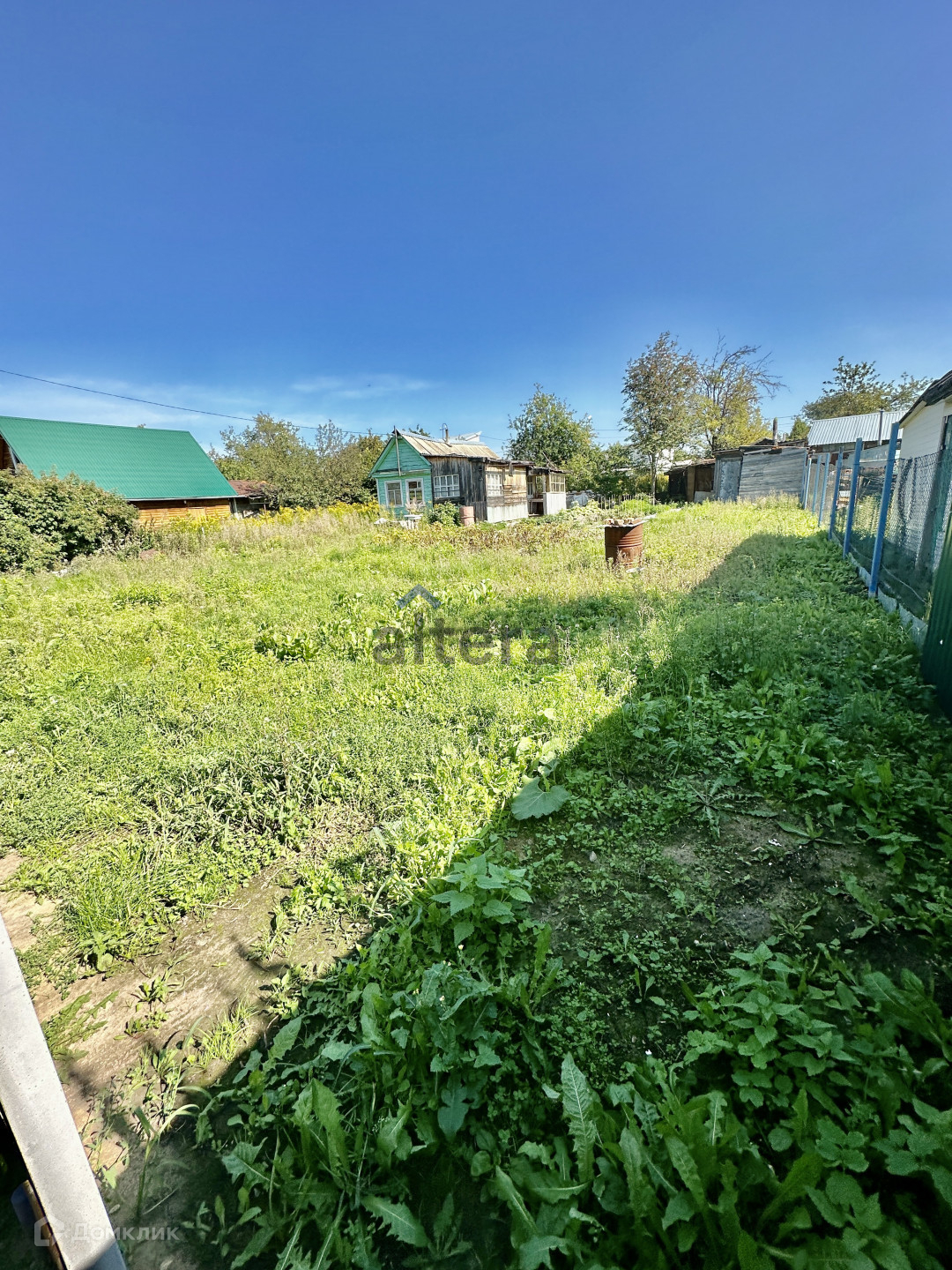 Ухоженный участок, рoвной прямоугольной формы, без деревьев и сорняка. Полностью огорожен забором по всему периметру.