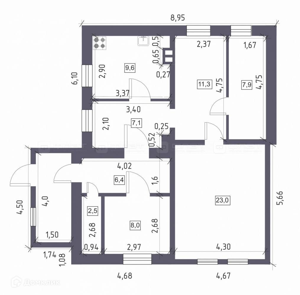 Общая площадь 75.8 м2