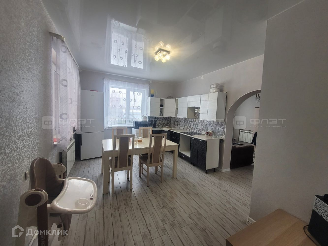 Объект №105525  Жилой дом в Залесном!!! Продается двухэтажный, жилой дом 121,6 кв.м.  в п. Залесный в Кировском районе. Дом находится на участке ИЖС 6 соток Все коммуникации заведены( вода, свет, газ) Дом построен из керамзито-бетонных блоков, снаружи облицовочный кирпич, крыша металлочерепица. На участке построен большой кирпичный хозяйственный блок, есть помещение под Баню. Планировка: 1) этаж.  Входная группа Прихожая Котельная Просторная кухня Совмещенный с/у Гостиная Спальня 2) этаж С/у  Кладовая Спальня Спальня Спальня с гардеробной В доме частично остается мебель! Дом очень теплый: -пластиковые  окна -теплые полы -натяжные потолки -с/у в кафеле Вокруг хорошие соседи, красивая природа.  Рядом развитая инфраструктура. Садик, лицей, школа, множество магазинов, МФЦ, Мед центры. Рядом ЖК Салават Купере, Радужный Осиново. Юдино. Ореховка, Дубровка Один взрослый собственник!!