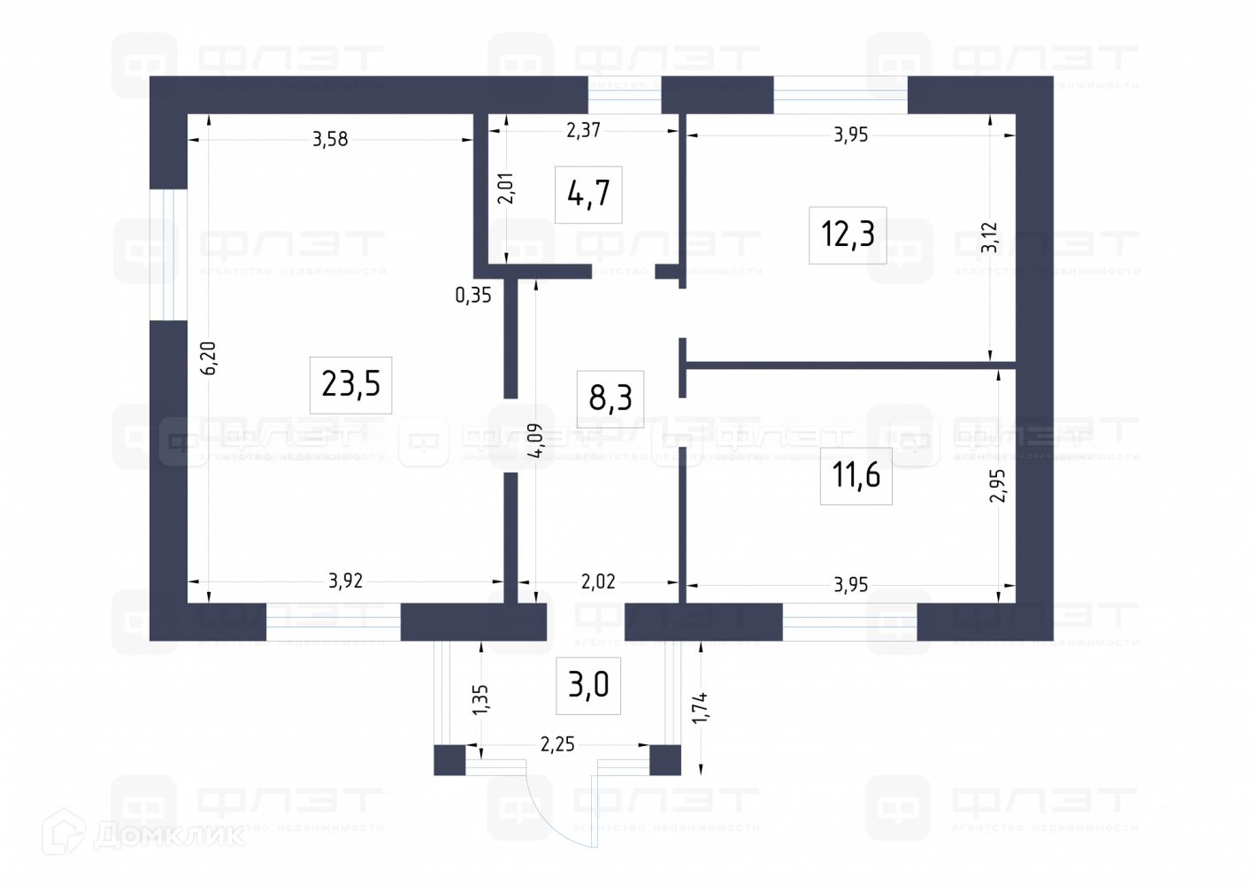 Общая площадь 63 м2