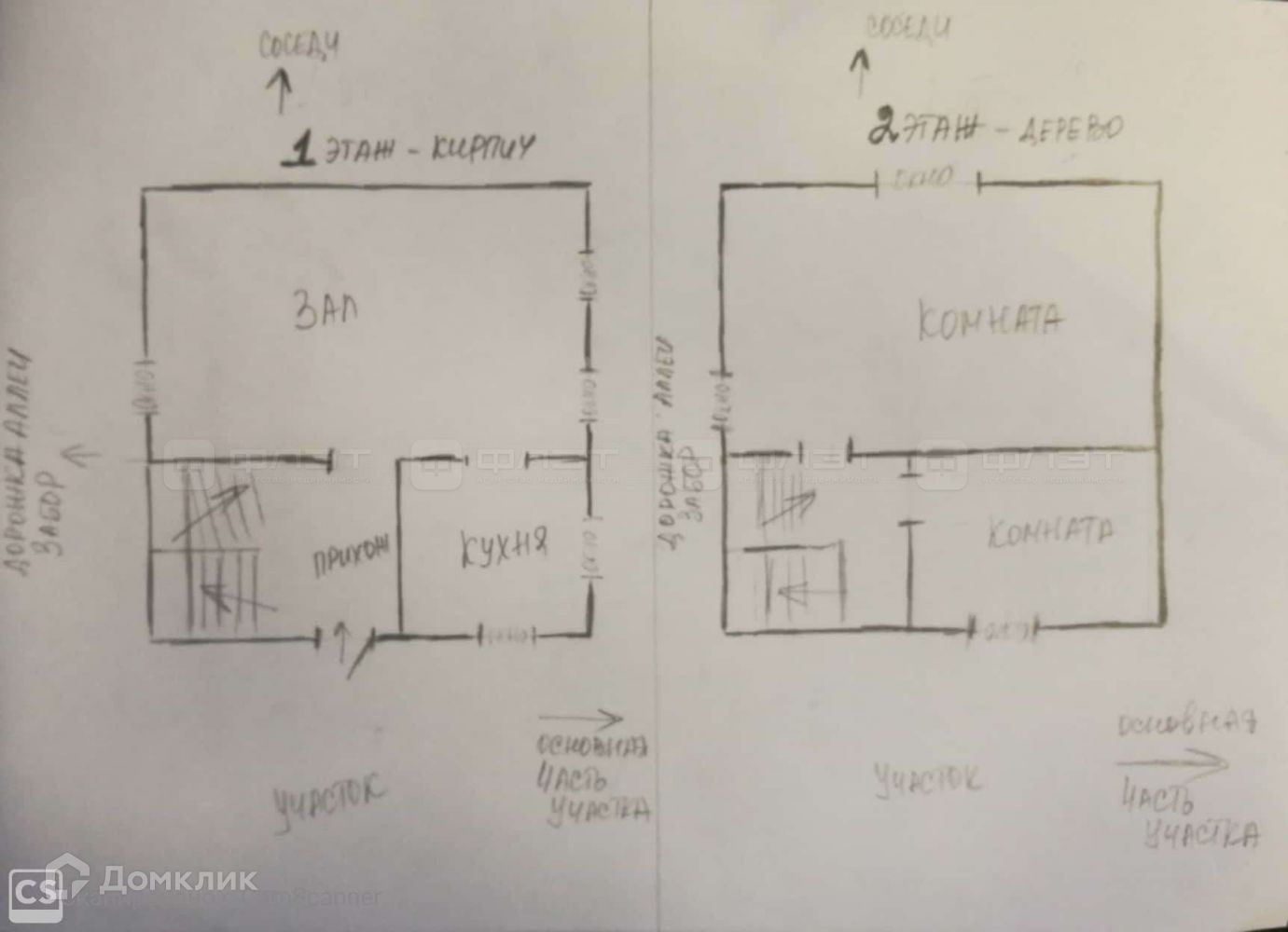 Первый этаж из белого кирпича : отдельная кухня и двумя окнами и большой зал стремя окнами