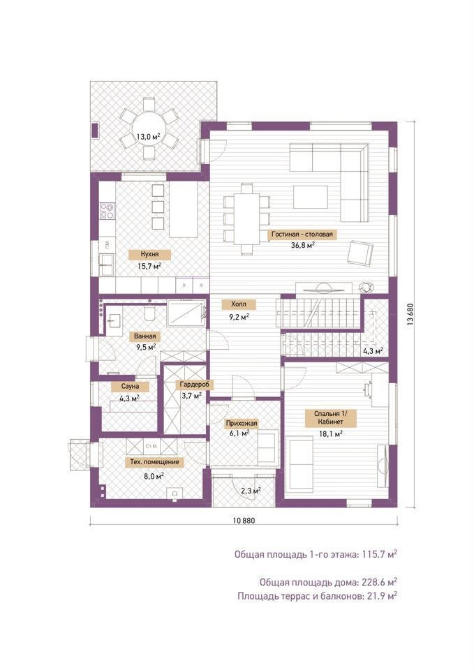 Вилла ЕL400C - просторный, надежный и теплый дом площадью 228.6 м2 с панорамными окнами. Класс энергоэффективности А++. Идеально подойдет для семьи с 2-3 детьми.