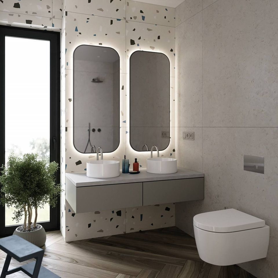 - Раковины и столешницы во всех санузлах