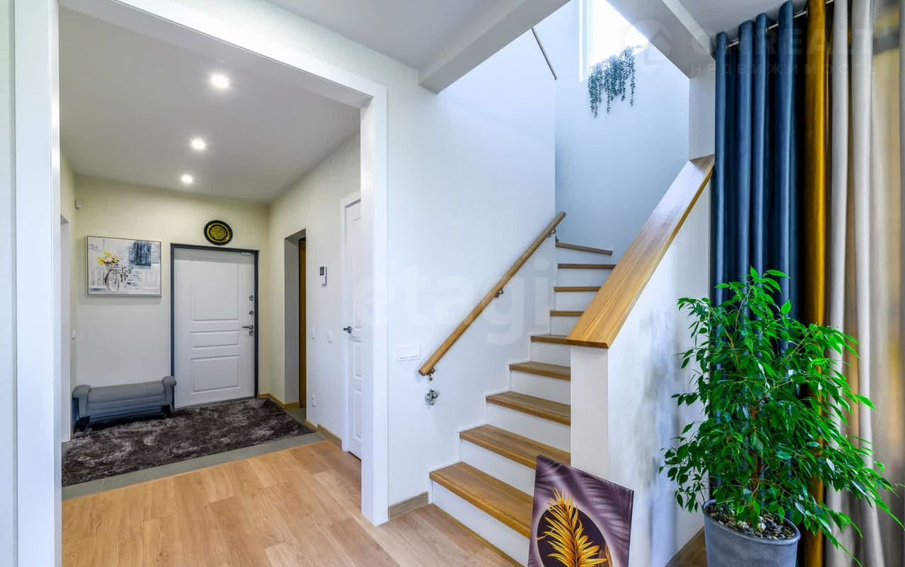 1 этaж – гоcтинaя, кухня co вcтpoеннoй теxникoй Bоsch, гаpдeробная, оборудованный санузел, смесители, инсталляции, унитазы Grоhе, кладовая, котельная. Общедомовой фильтр с системой очистки и умягчения воды + питьевой фильтр.