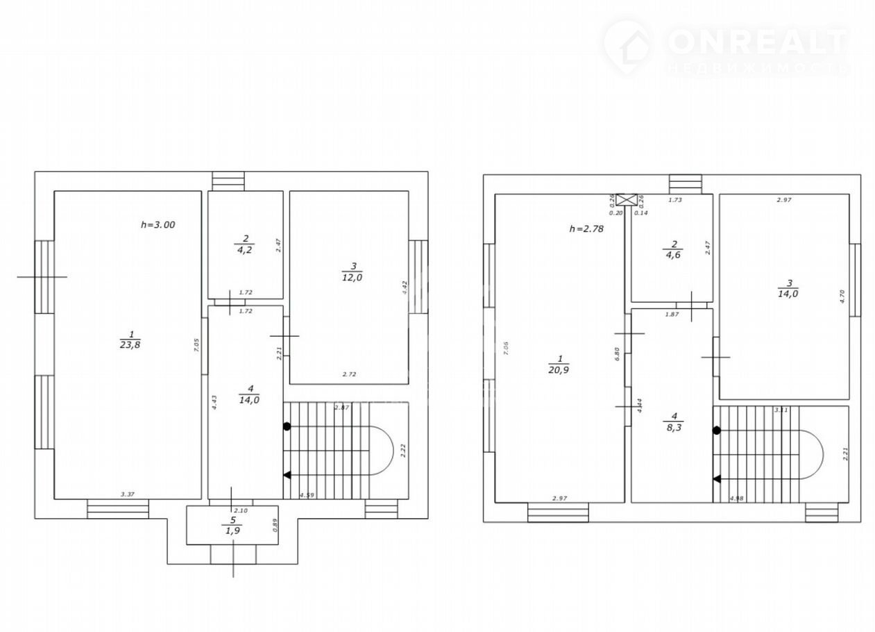 2 этаж: Три спальные комнаты, санузел;