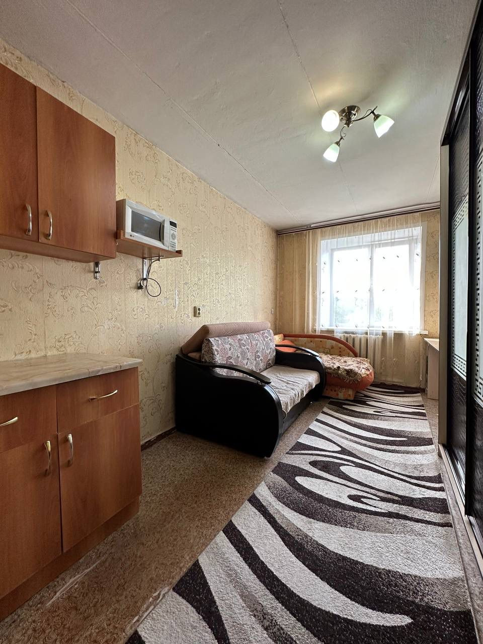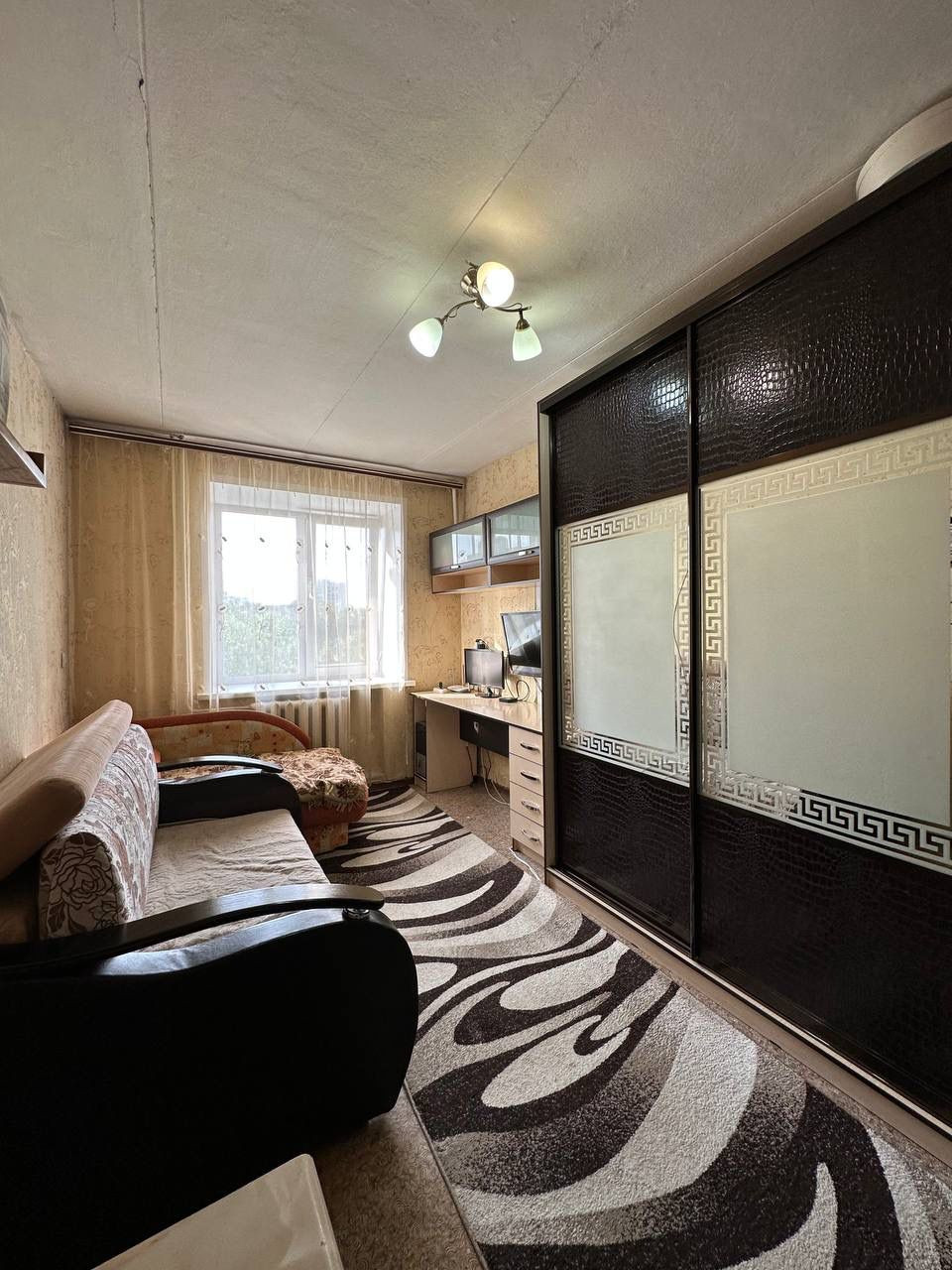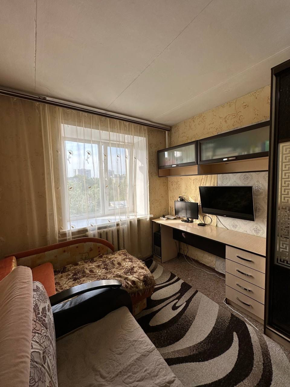 В комнате пластиковое окно, остается вся мебель-можно заезжать и жить.Места общего пользования в чистоте, дружелюбные, спокойные соседи. Чистый подъезд, во дворе парковочные карманы.