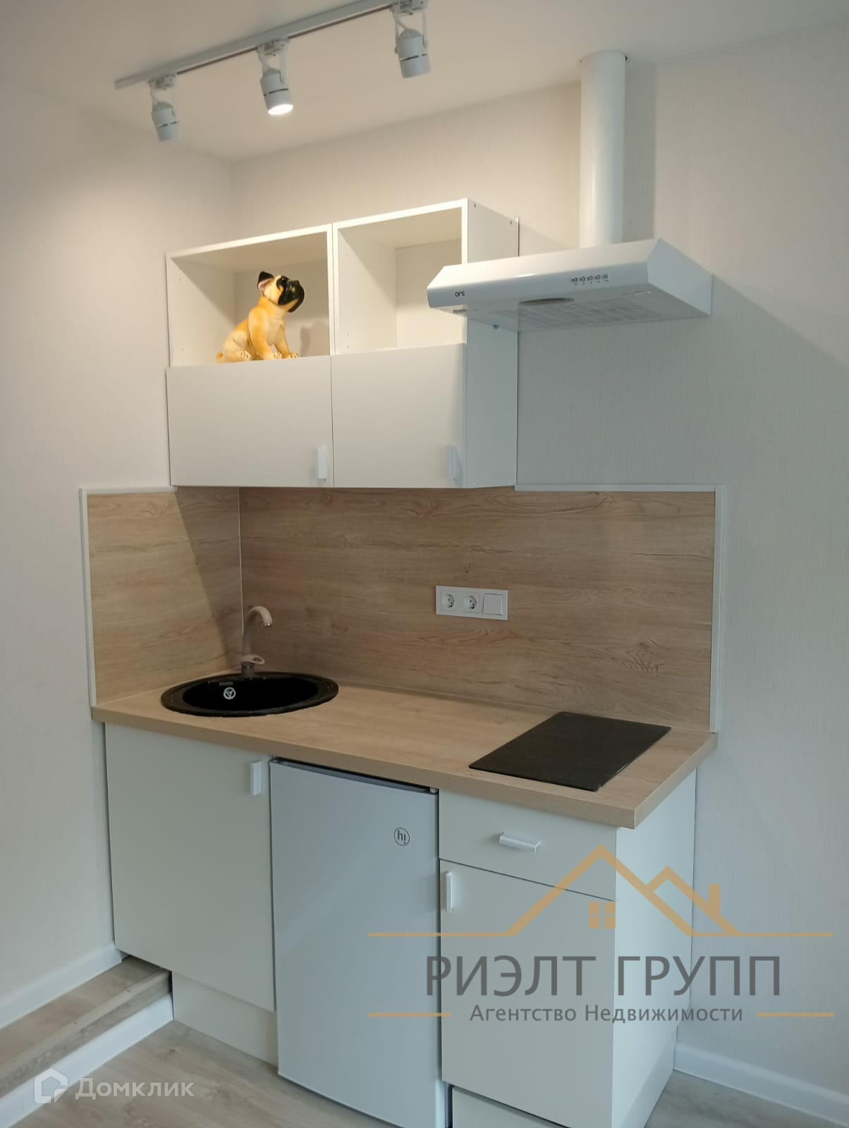 Установлен кухонный гарнитур с варочной панелью.