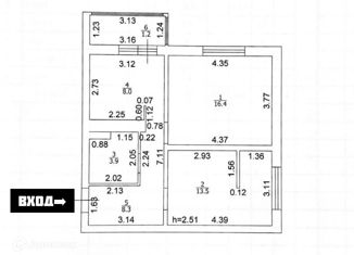 Общая площадь: 51.3 м2