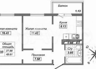 2-ком. квартира на продажу, 48 м2