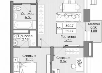 Общая площадь: 55.2 м2