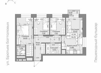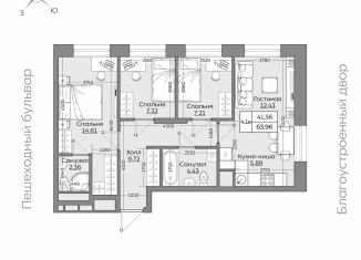 Общая площадь: 64.3 м2