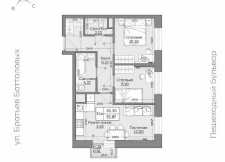 Общая площадь: 51.9 м2