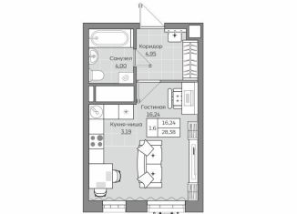 Квартира на продажу студия, 28.4 м2