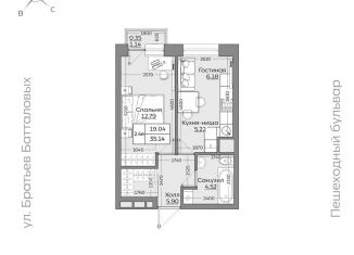 Однокомнатная квартира на продажу, 35.4 м2