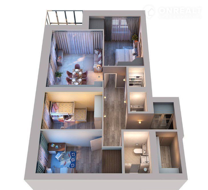 - Самая продуманная планировка среди 3-х комнатных квартир комплекса