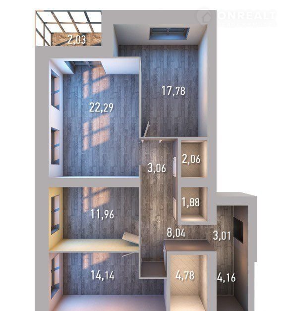 Площадь кухни 22.3 м2