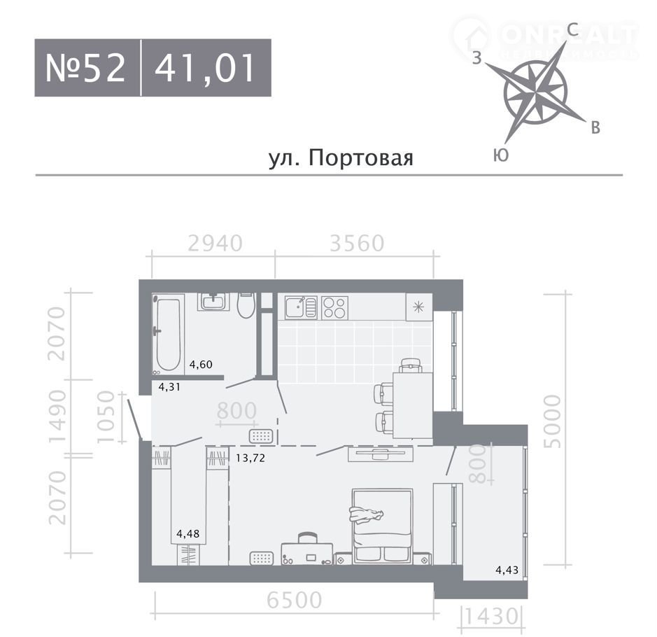 Общая площадь 41 м2