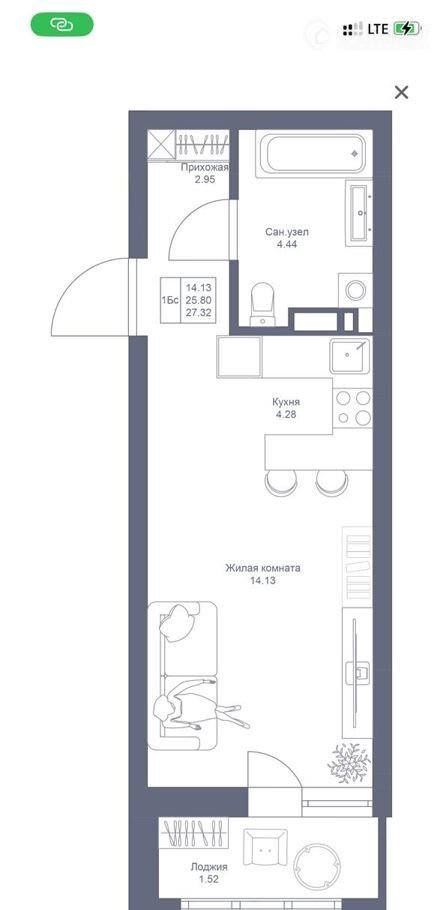 Общая площадь 27.3 м2