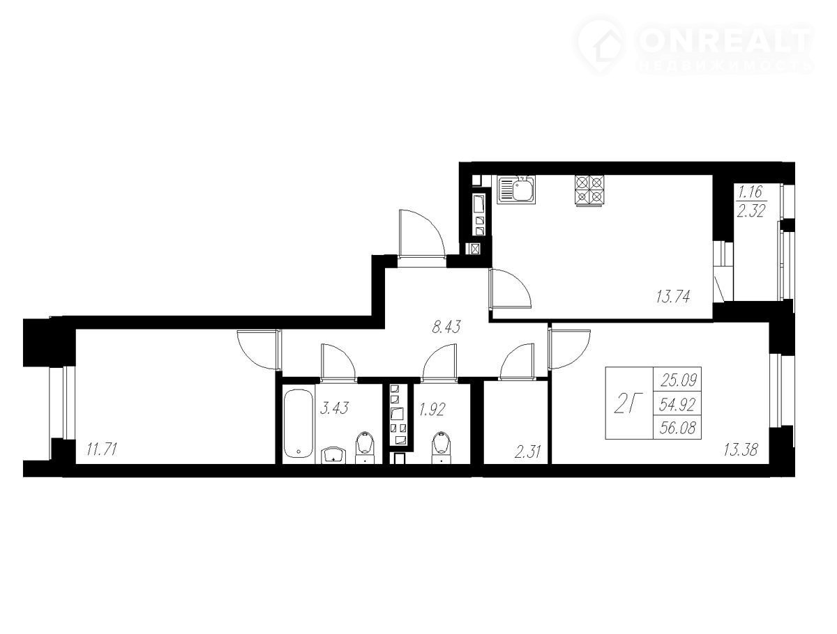 Общая площадь 56.1 м2