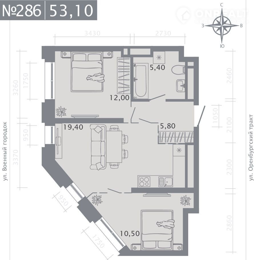 Общая площадь 53.1 м2
