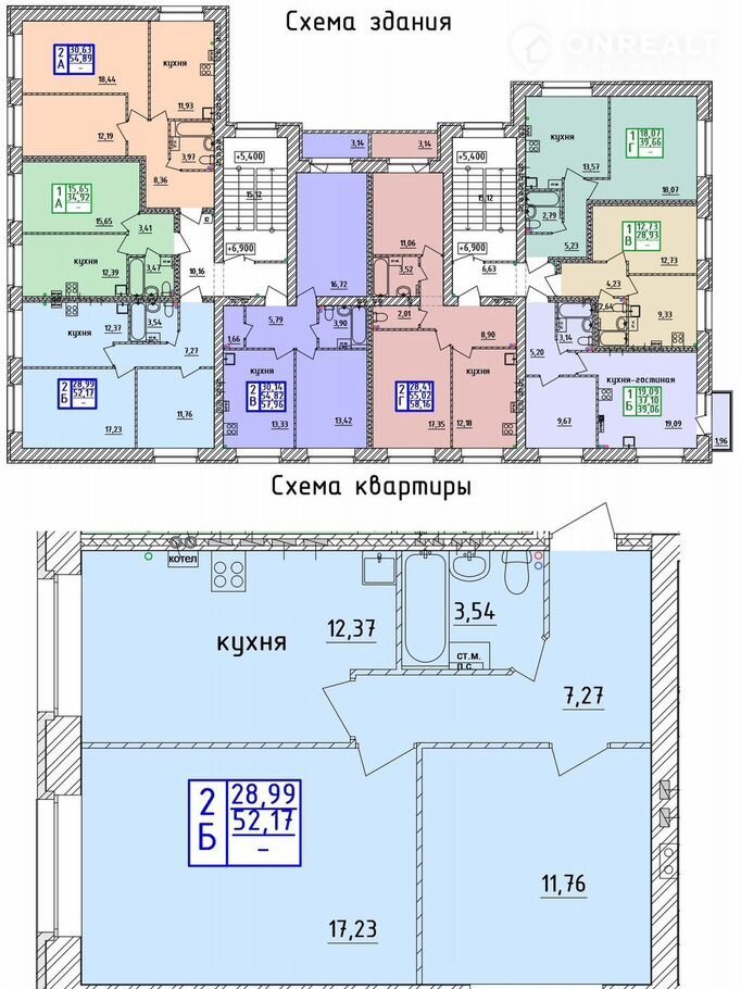 Общая площадь 52.2 м2