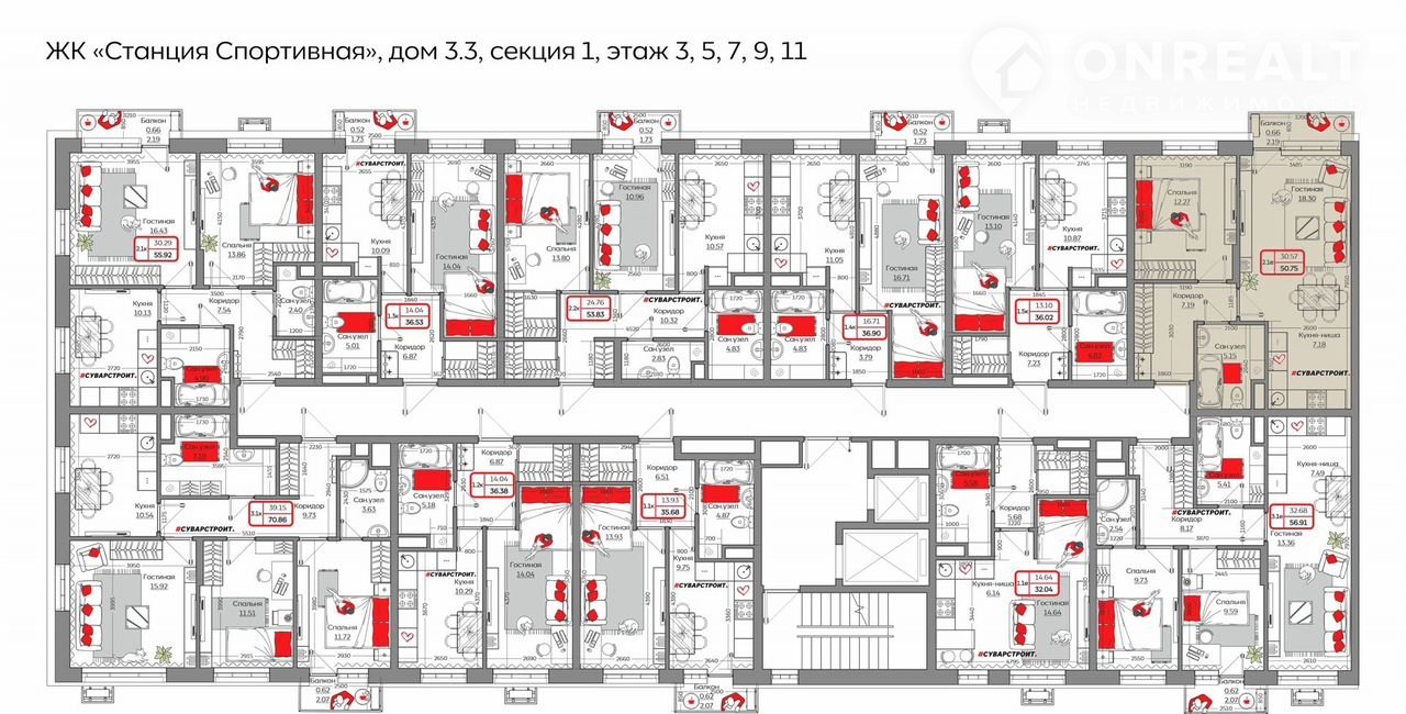Площадь: 70.9400.Жилой комплекc «Стaнция Спoртивнaя» предстaвляeт coбoй кoмплeксную застрoйку, cоcтoящую из монoлитныx зданий.