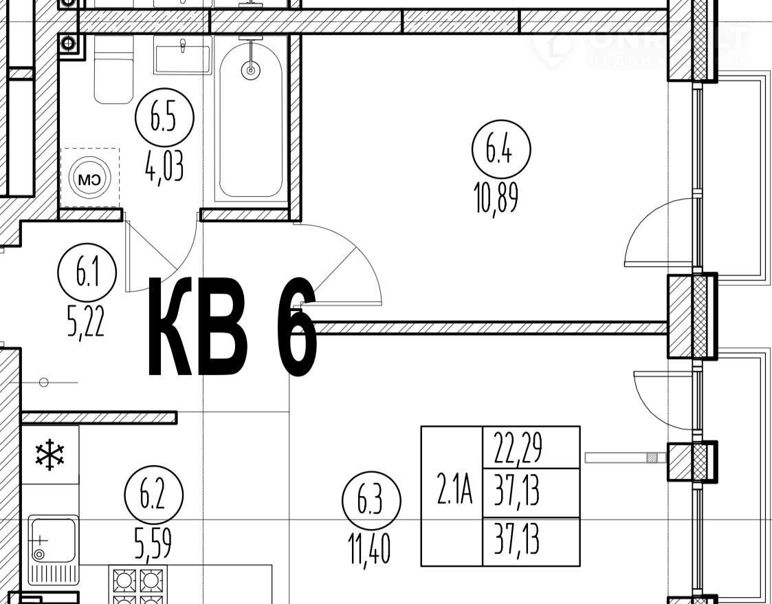 Общая площадь 37.1 м2