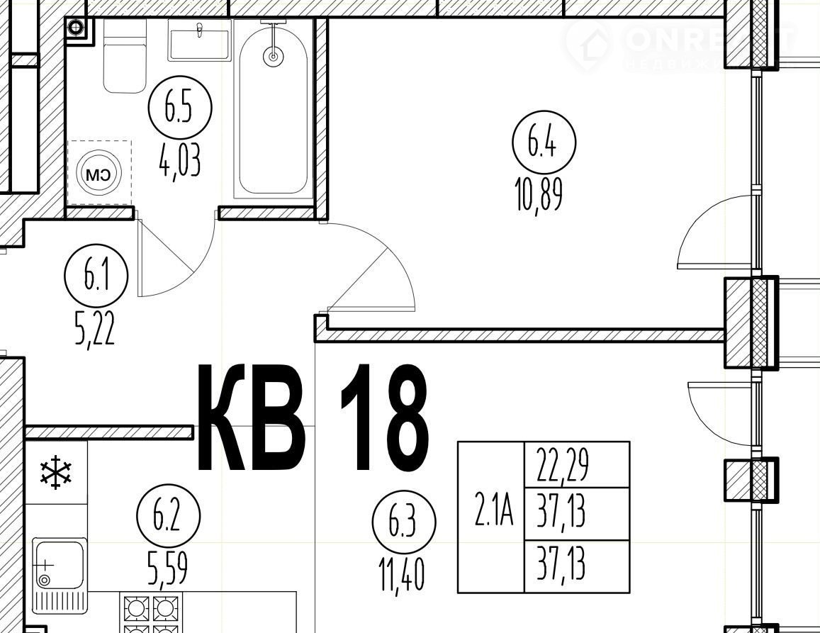 Общая площадь 37.1 м2