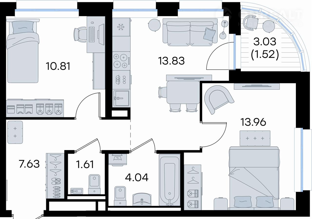 Каждая семья, каким бы составом она ни жила, найдет для себя идеальное пространство. Планировочные решения запроектированы с просторной кухней-гостиной, чтобы семья могла комфортно проводить время вместе. В целях безопасности в детских комнатах отсутствуют балконы и лоджии.