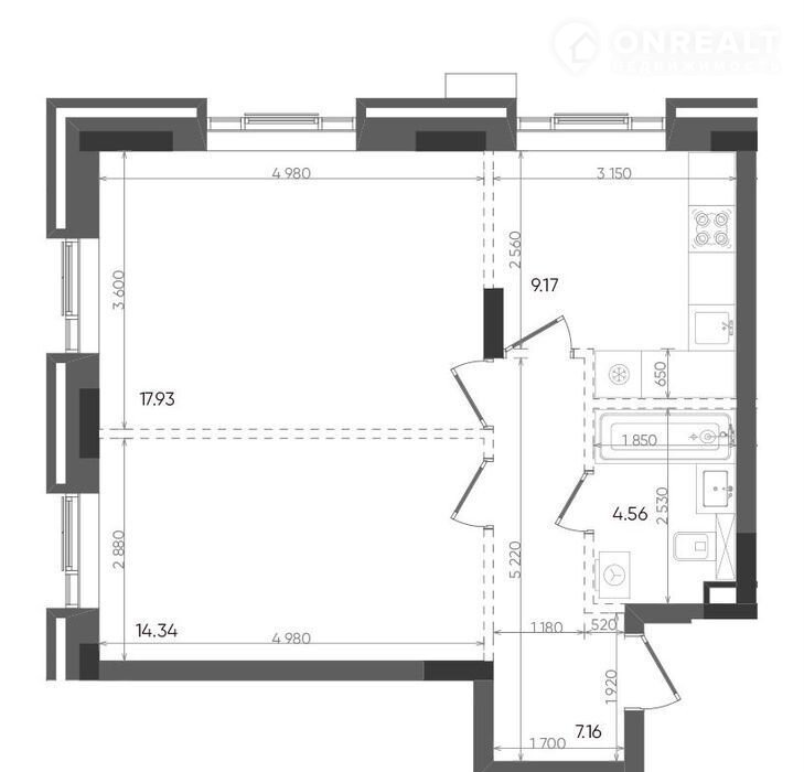 Площадь кухни 9.2 м2