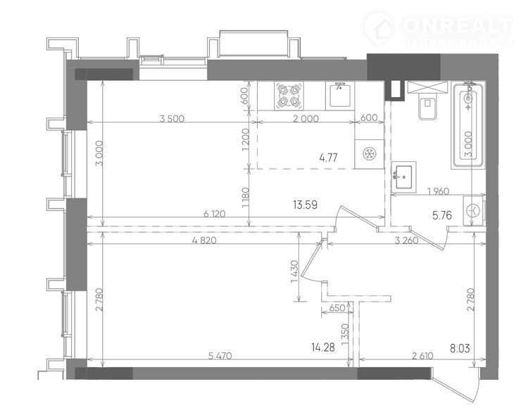 Площадь кухни 4.8 м2