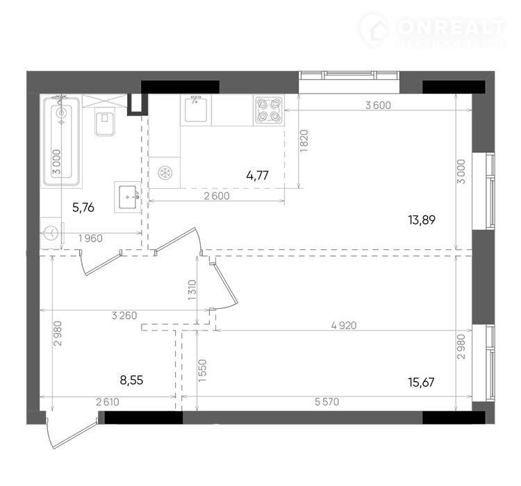 Площадь кухни 4.8 м2