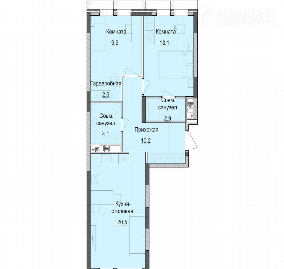 Общая площадь 63 м2