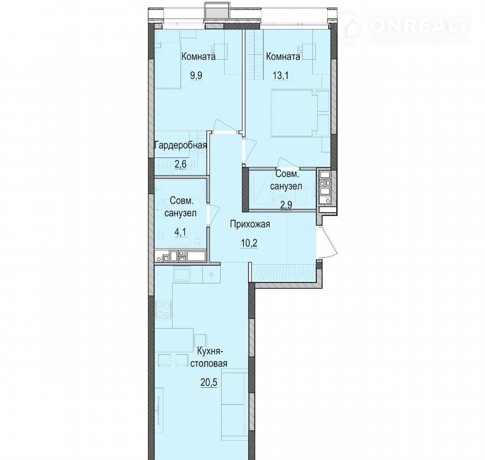 Общая площадь 63 м2