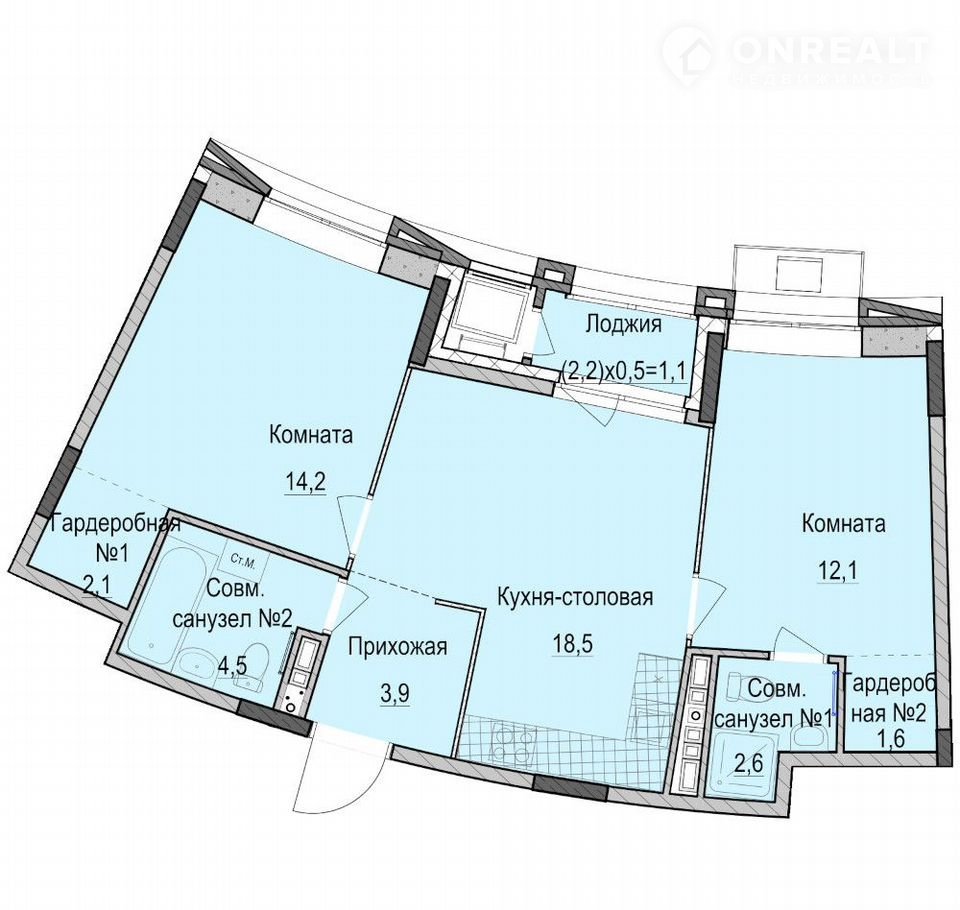 Общая площадь 59.5 м2