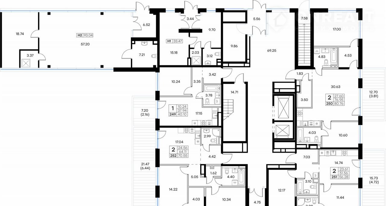 Общая площадь 56.3 м2